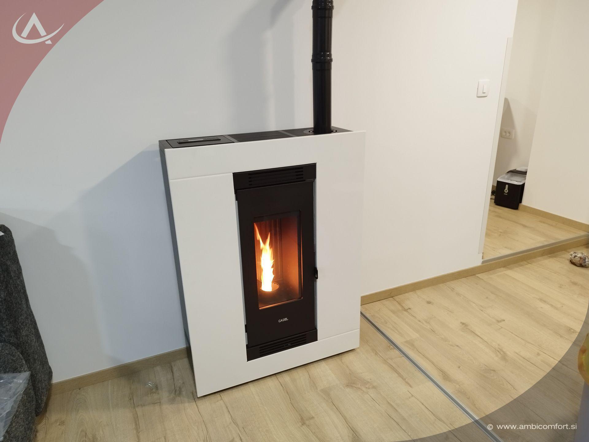 Kovinska obloga s steklenimi vrati kurišča za lep pogled na plamen.