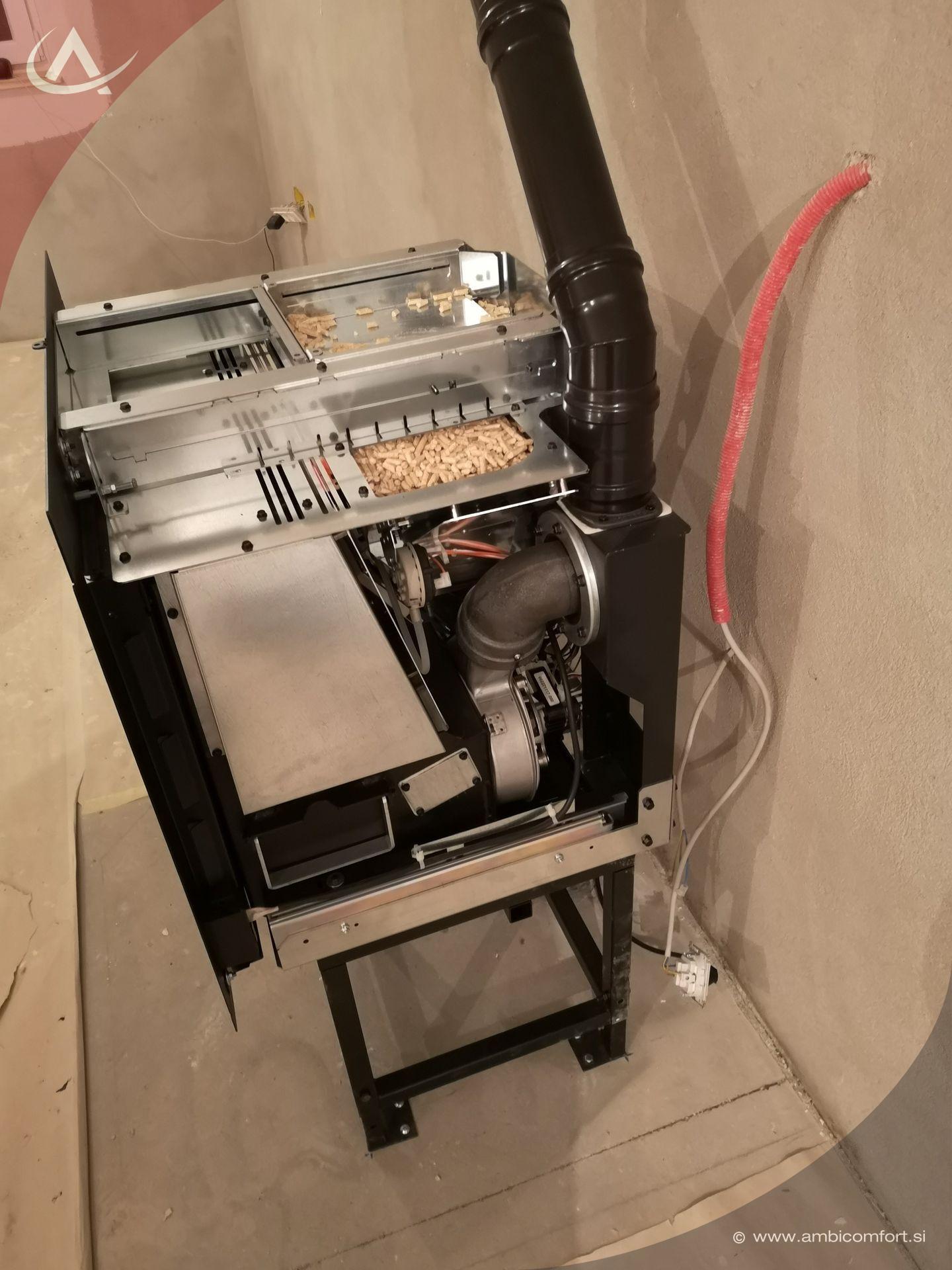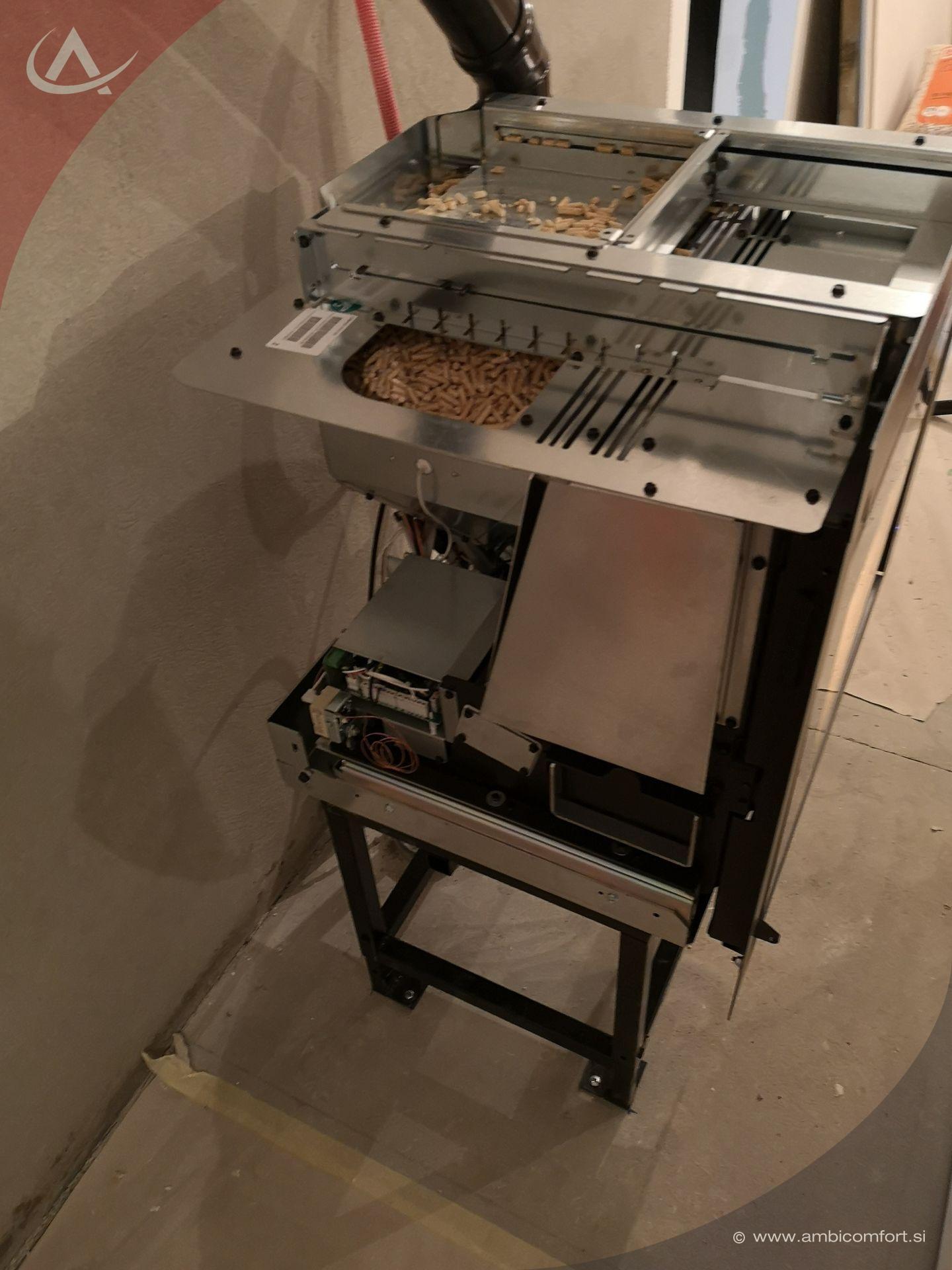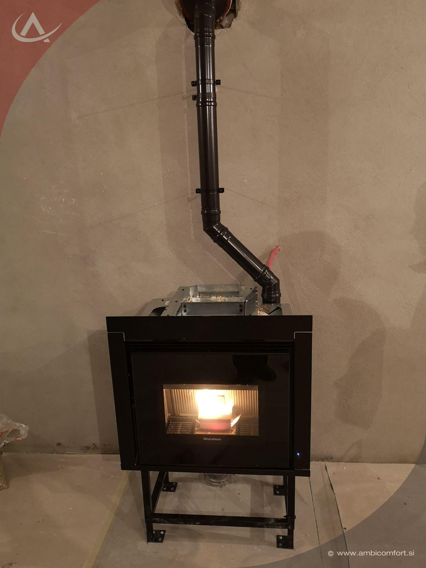 V Pristavi pri Mestinju bo kaminski vložek na palete Extraflame P70 Air ogreval velike dnevne prostore. Za lažje nalaganje peletov je bil kamin na pelete opremljen z izvlečnim predalnikom. Kamin je bil postavljen na originalni podstavek, kar omogoča najboljši način za prilagajanje višini kurišča.