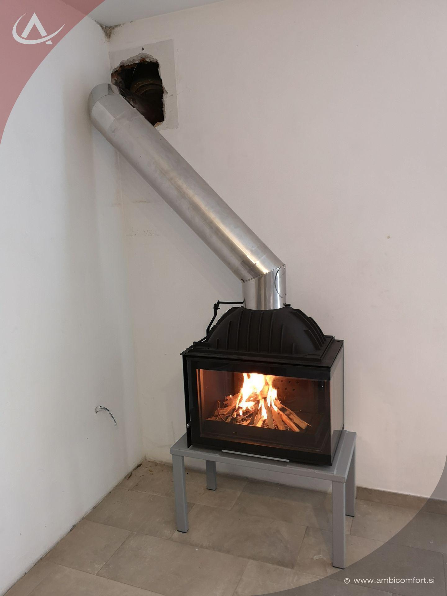 Dodajanje predhodno segretega zraka v zgorevalno komoro. Dodaten dovod zraka na zadnji strani omogoča uničenje ogljikovodikov pri visokih temperaturah. Izgorevanje je popolno.