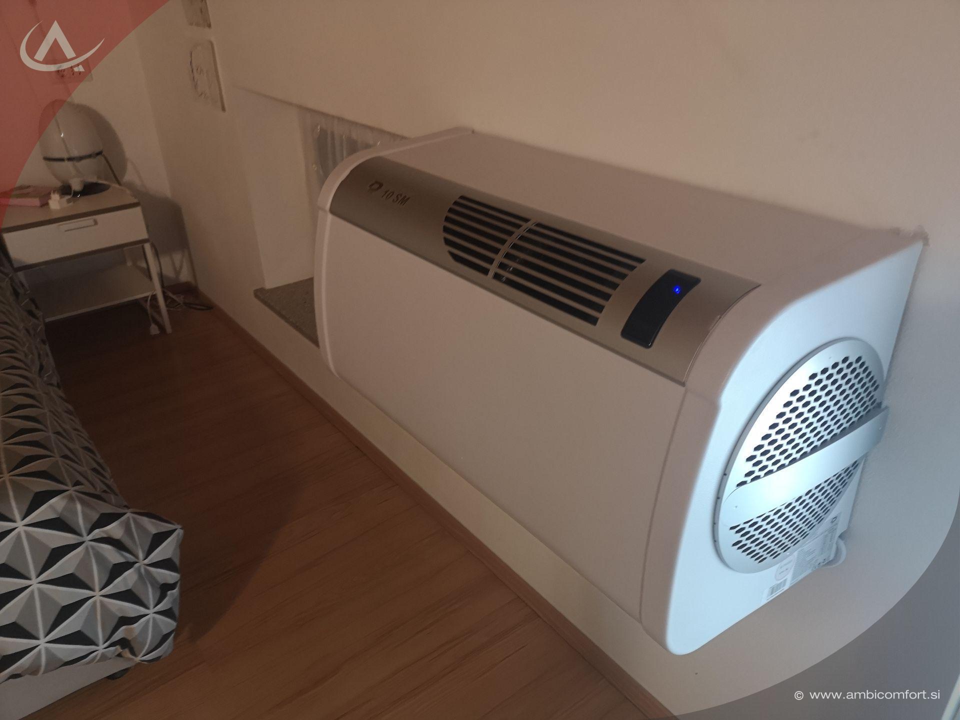 Enote se namestijo ob steno, v kateri je treba narediti dve odprtini s premerom 180 mm. Obe odprtini sta zaključeni s funkcionalno rešetko, ki jo je mogoče zapreti. Klimatska naprava skozi eno odprtino vsesava svež zrak, skozi drugo odprtino pa izpihuje odpadno toploto. Funkcije hlajenja, ogrevanja in razvlaževanja so neodvisne.