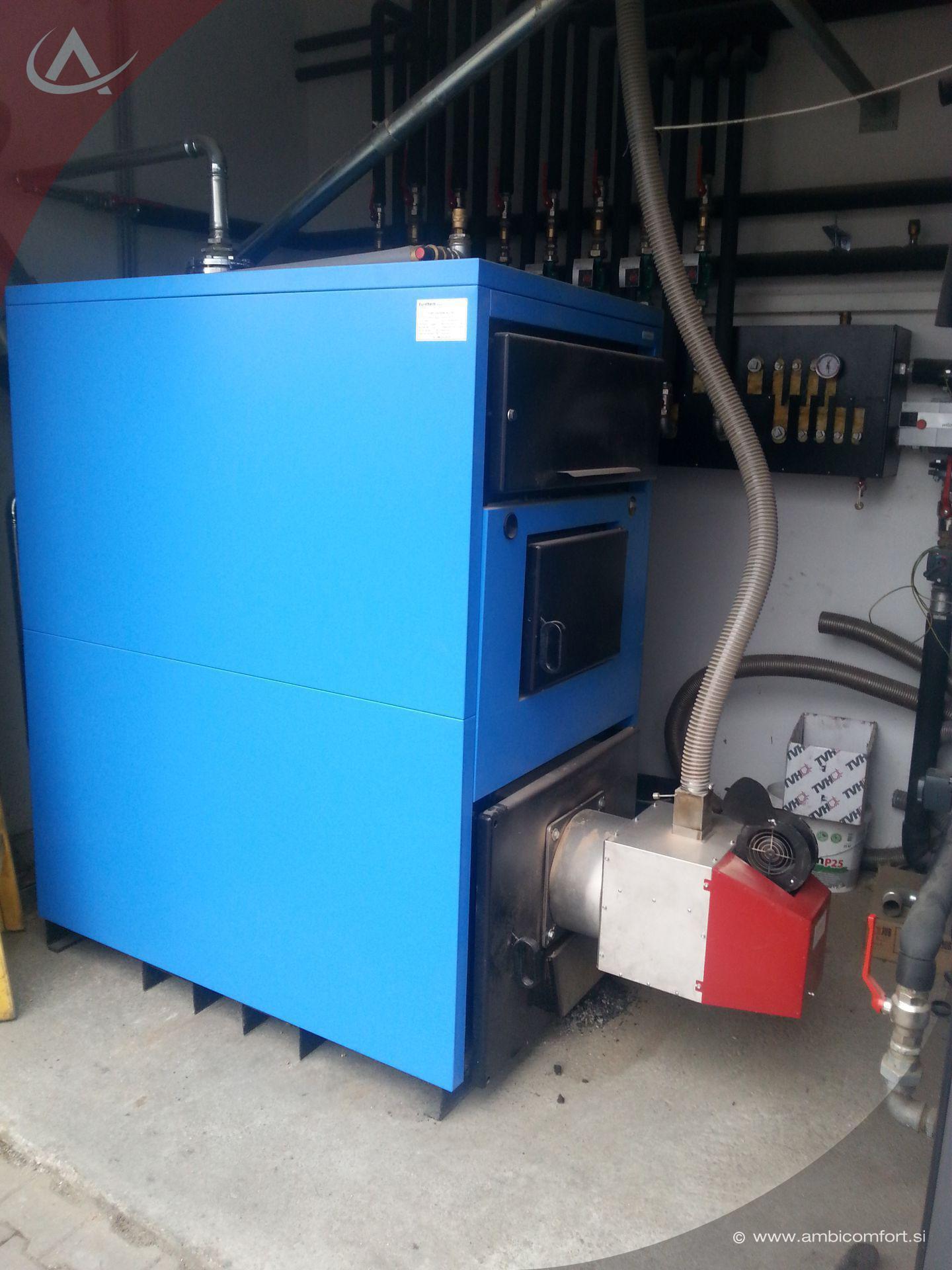 Dvostopenjski sistem oskrbe z gorivom: zunanji podajalnik dovaja pelete v gorilnik, notranji podajalnik pa biomaso v ustrezni količini dovaja v zgorevalno komoro. Notranji podajalnik ima tudi vlogo mešalnika goriva. Optimizacija procesa zgorevanja omogoča zgorevanje peletov z visoko vsebnostjo pepela. Funkcija mešanja goriva pomeni podaljšanje delovanja gorilnika brez vzdrževanja.