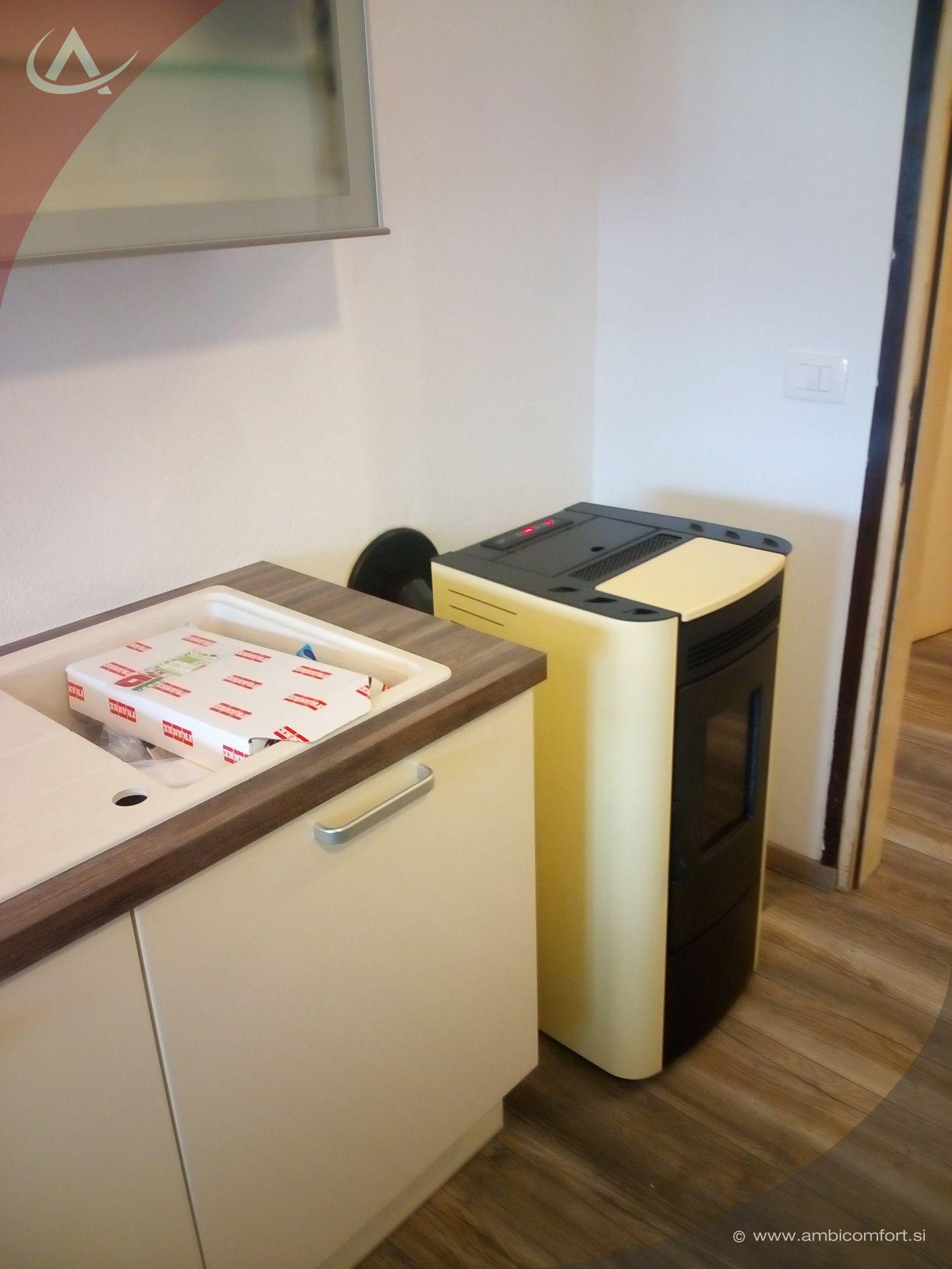 Poleg nove kuhinjske opreme je bila nameščena ventilacijska kaminska peč na pelete La Nordica Extraflame Ketty, ki bo ogrevala celo stanovanje.
