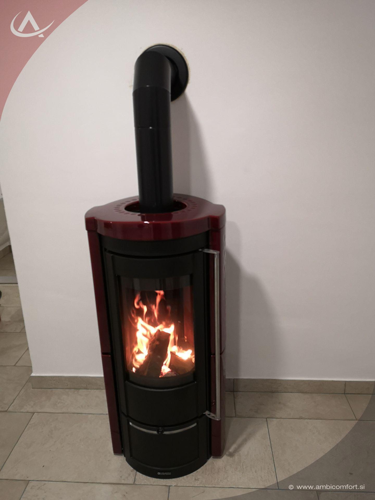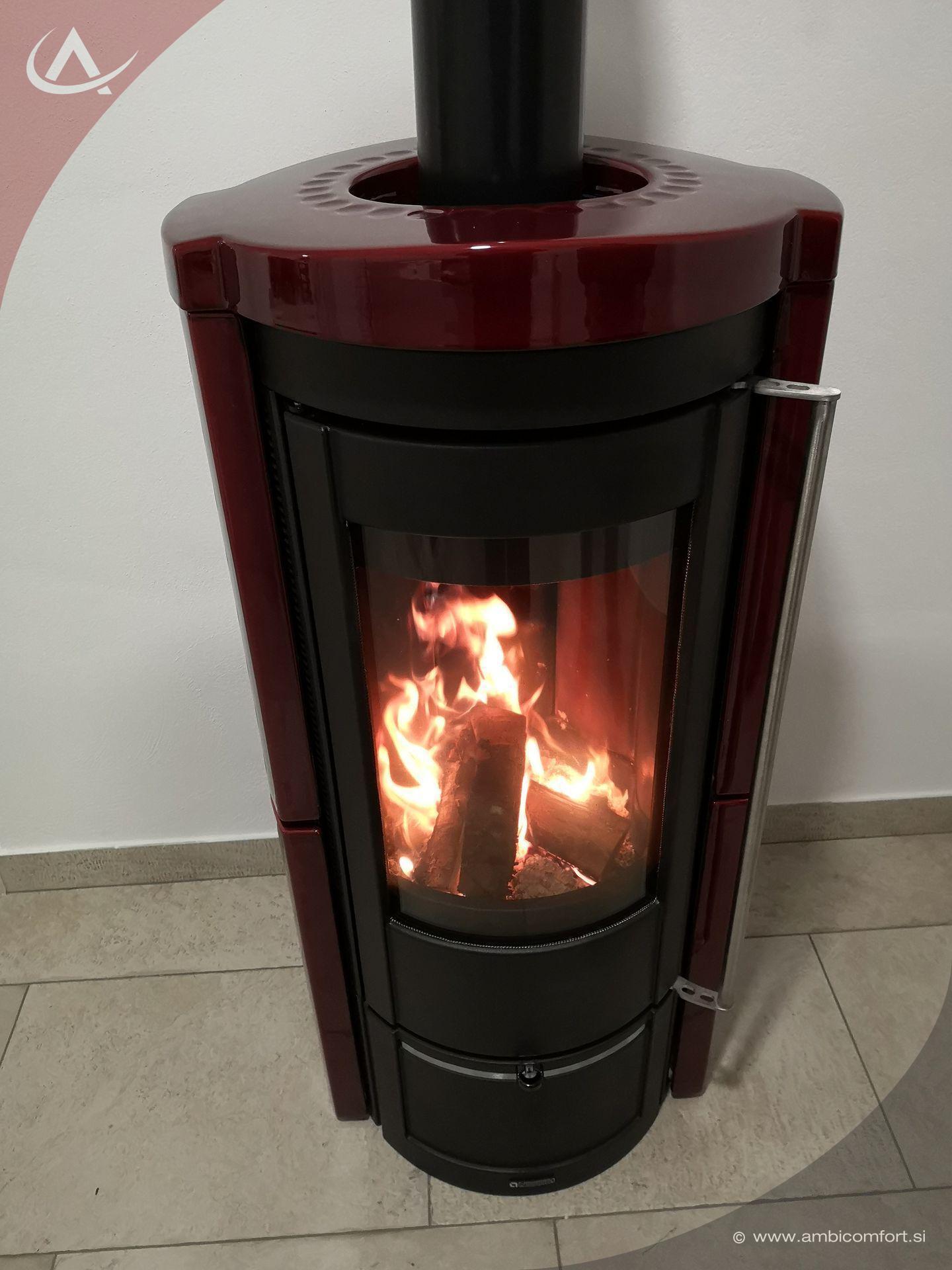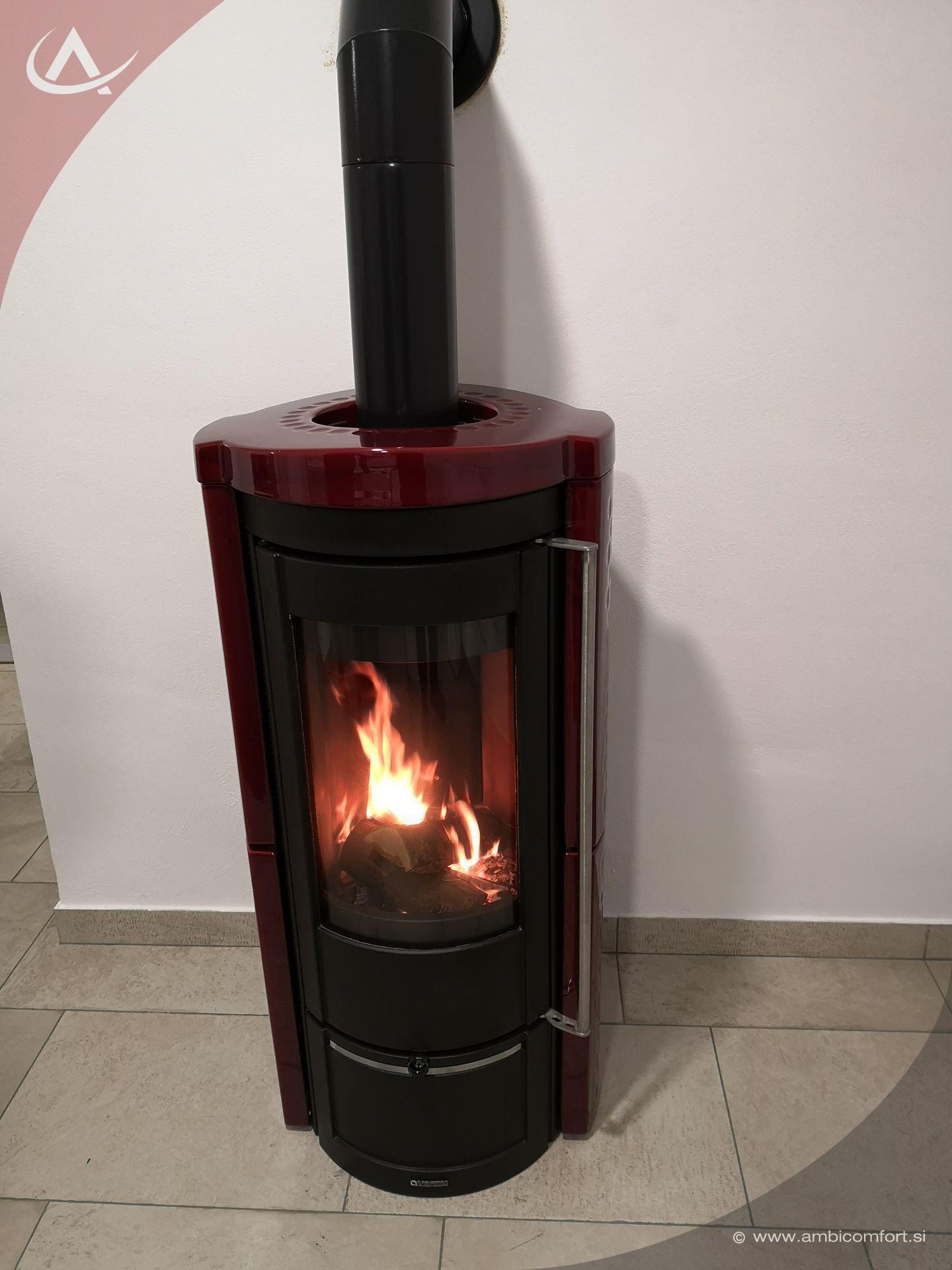 Primarni in sekundarni zrak je mogoče enostavno nastaviti z eno samo vlečno napravo, medtem ko je terciarni zrak predhodno kalibriran s sistemom za naknadno zgorevanje. Poleg tega lahko za zagotovitev dodatne varnosti med namestitvijo je možnost izbire zajema zunajega zraka neposredno od zunaj. Priročen ergonomski ročaj, elegantna obloga iz majolike in prostorno ognjevarno kurišče Nordiker z velikim panoramskim ukrivljenim steklom so le nekatere podrobnosti, zaradi katerih je ta peč eleganten in funkcionalen element za opremljanje vsakega bivalnega prostora.