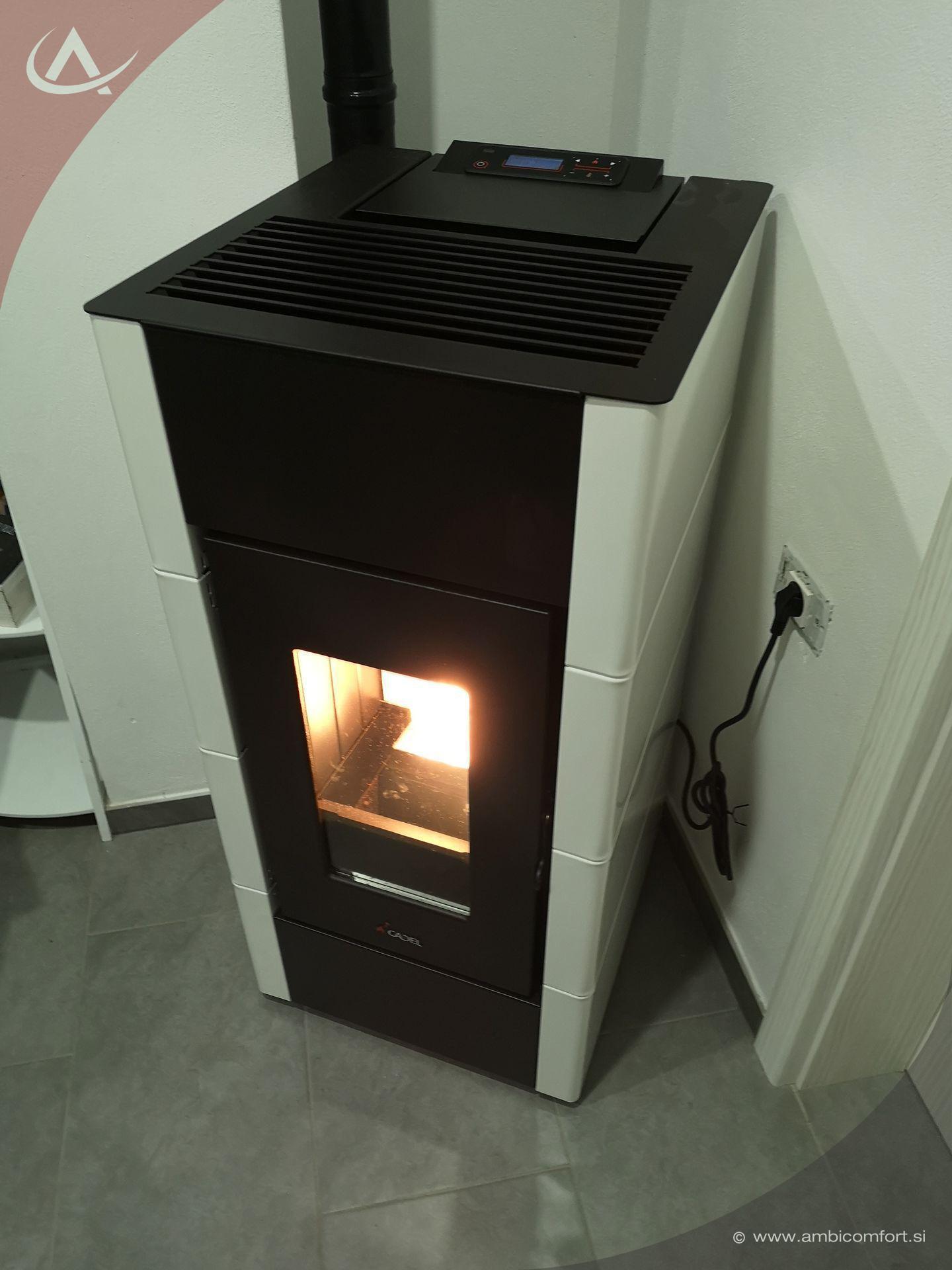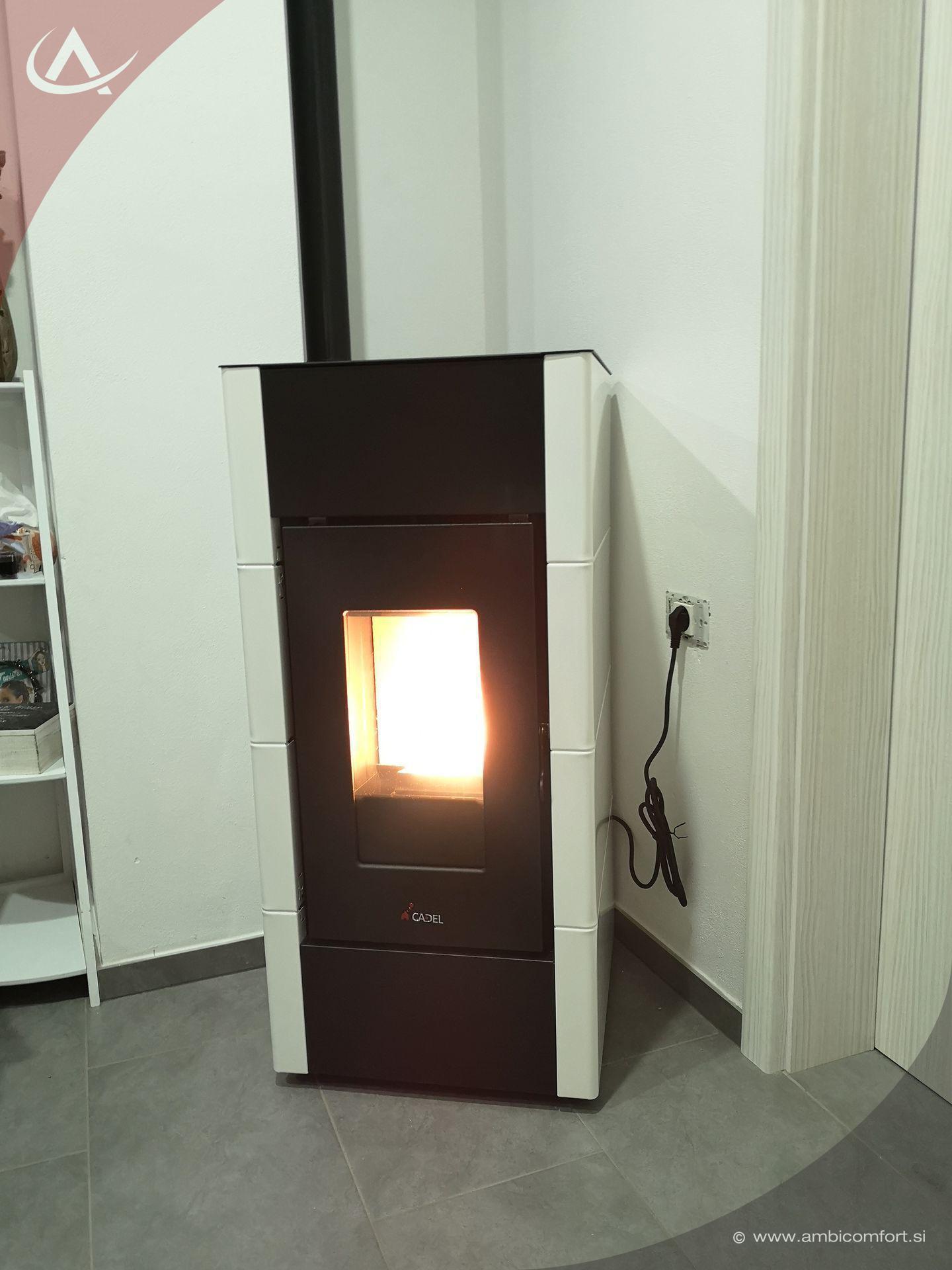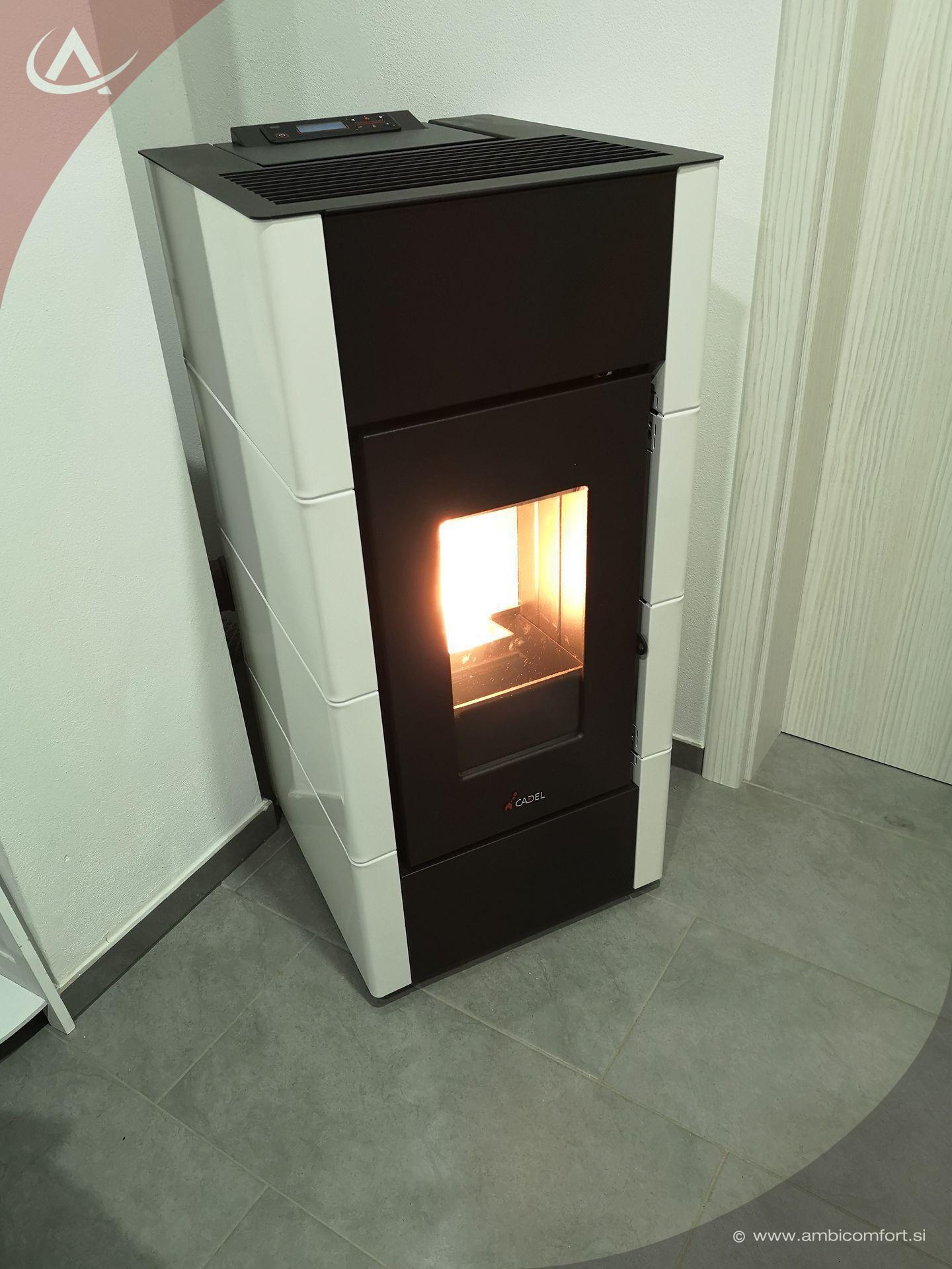 Kaminska zračna peč na pelete Cadel Cristal ima jekleno oblogo in ponuja linearen in preprost dizajn.