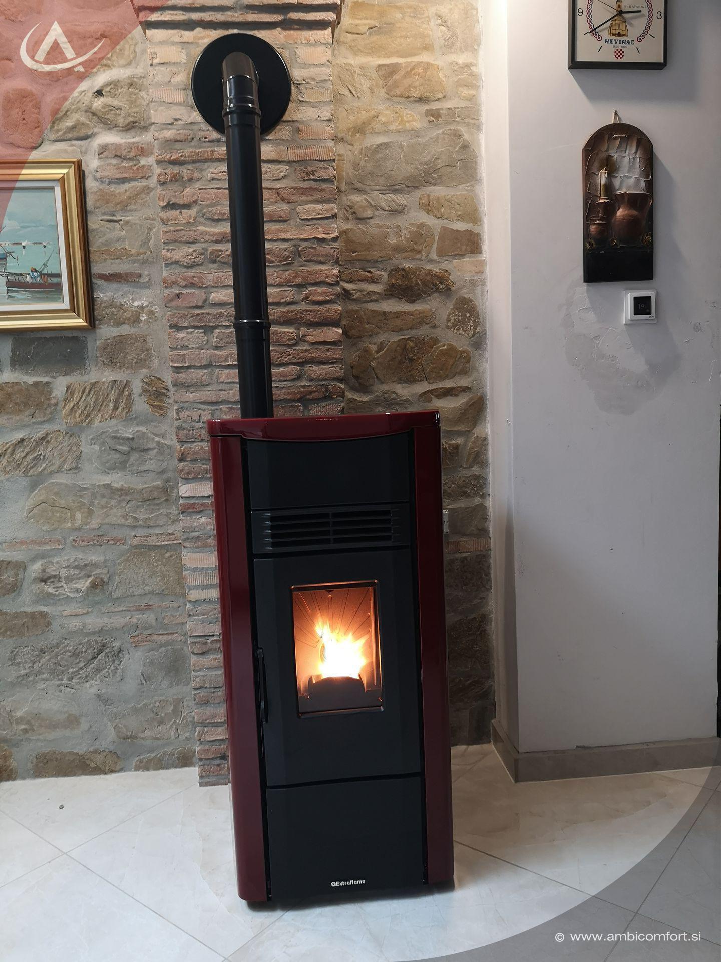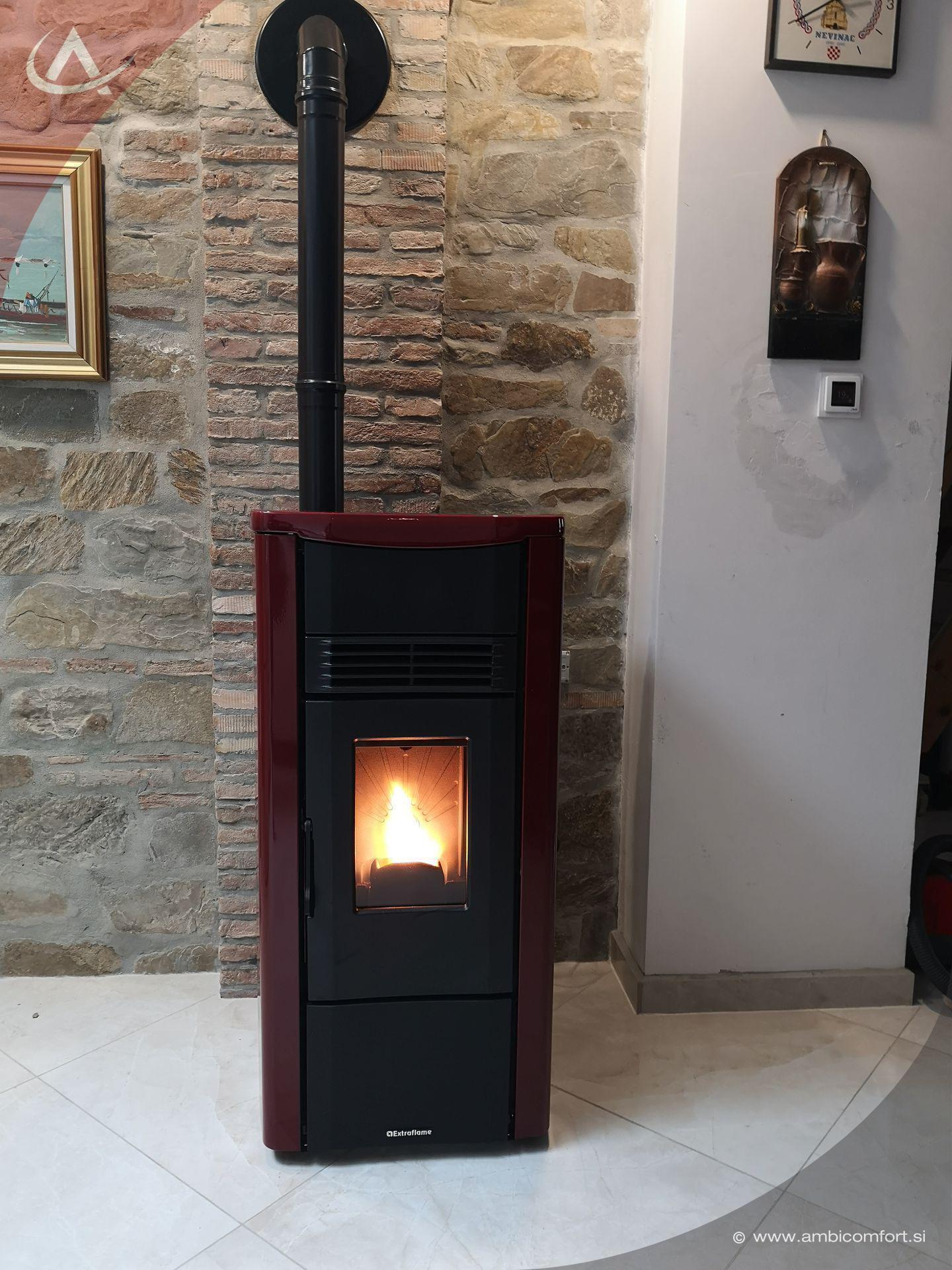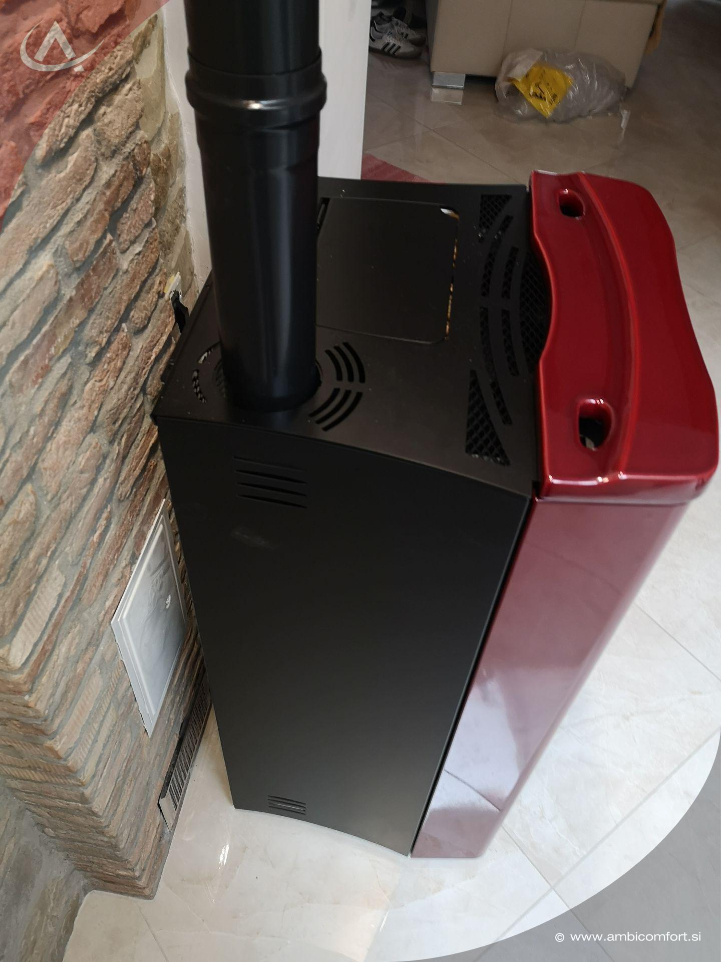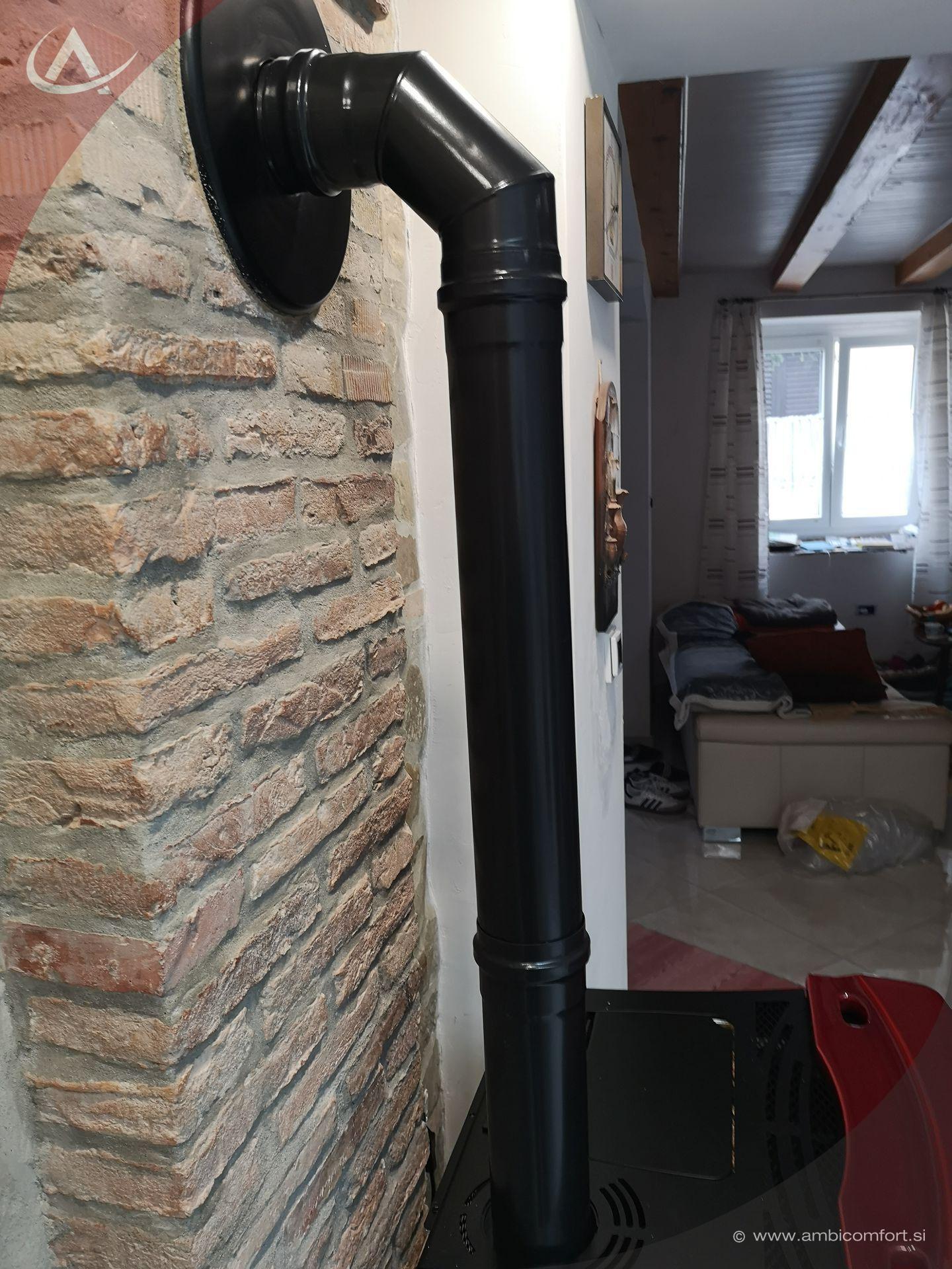 Ob postavitvi ob steno veliko pripomore tudi zgornji priključek kamina, saj tako lahko peč zelo približamo zidu.