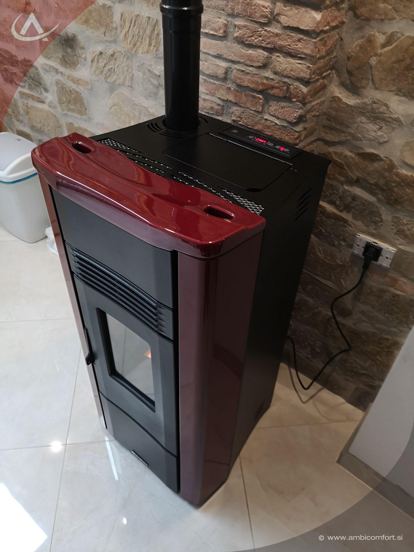 Nekoliko v notranjost zaokrožene stranice s kovinsko oblogo v črnem in rdečem kontrastu ter poudarek elegance s keramičnim elementom na pokrovu prispevajo k temu, da se peč naravno zlije tudi v rustikalen prostor.