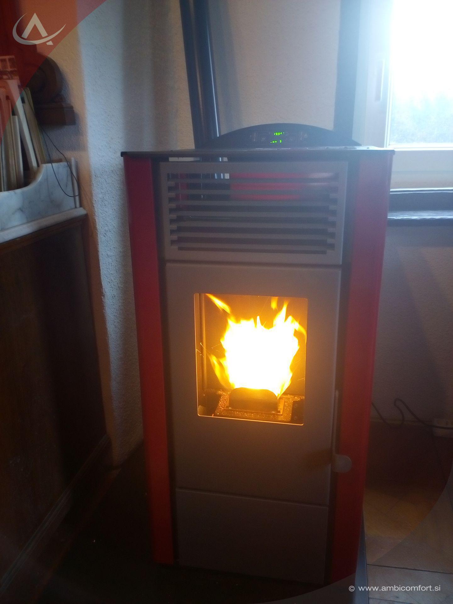 Peč na pelete Lory s preprosto obliko in z lepim pogledom na plamen dejansko ogreje in poživi prostor.