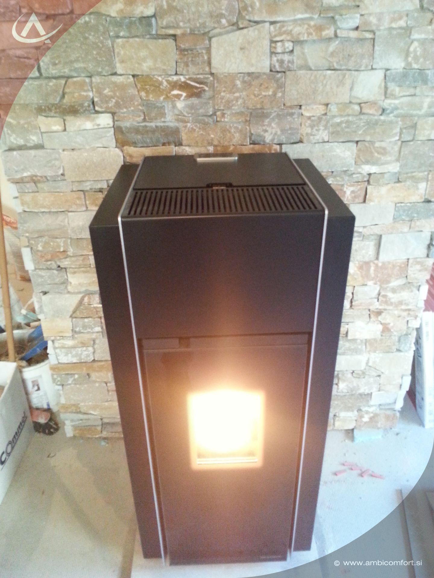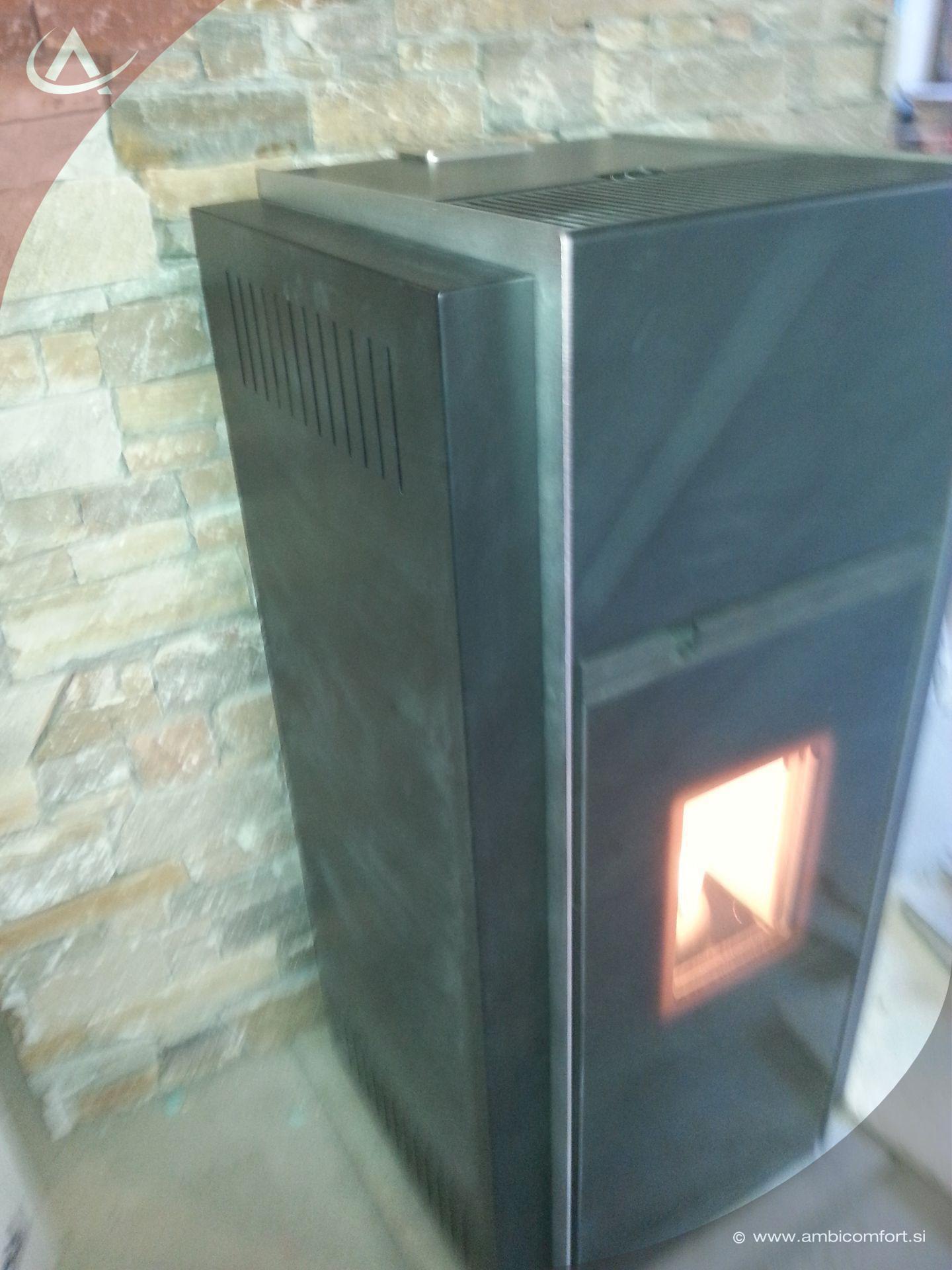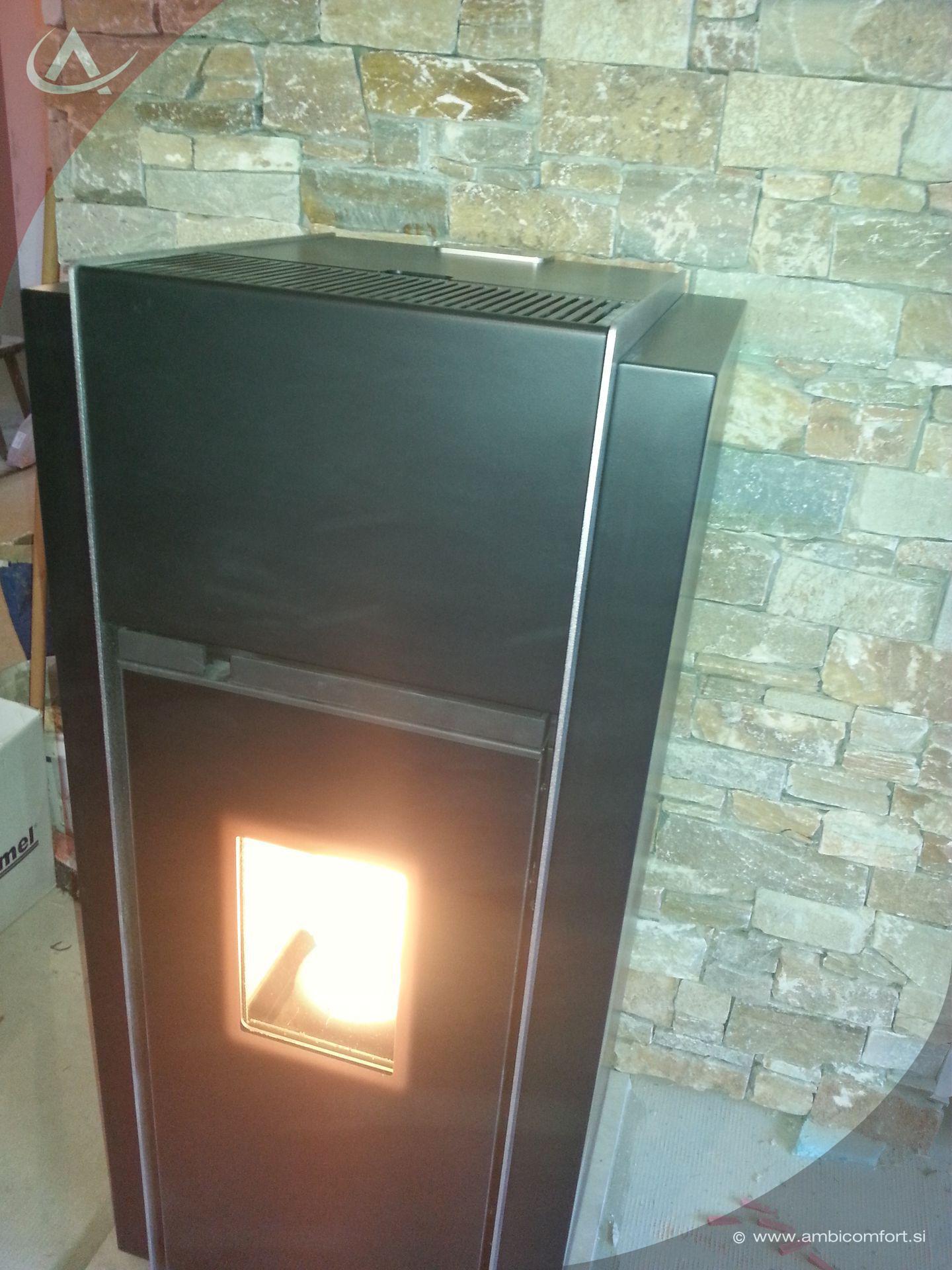 Peč na pelete Palazzetti Allegro 12kW s kanalsko distribucijo vročega zraka. Dva ločena ventilatorja zagotavljata vpih toplega zraka v kanalski razvod do razdalje 15 m.