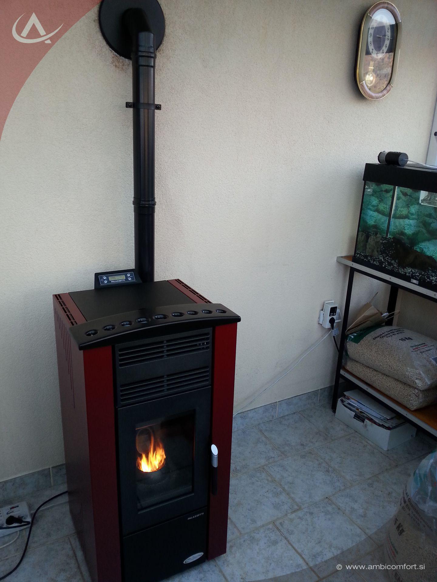 Peč na pelete s keramično ploščo in pobarvanim kovinskim ohišjem. Vrata, ognjišče in kurišče so izdelani iz debelega litega železa. Sistem za polnjenje peletov Star. Ročica proti opeklinam. Velik predal za zbiranje pepela.