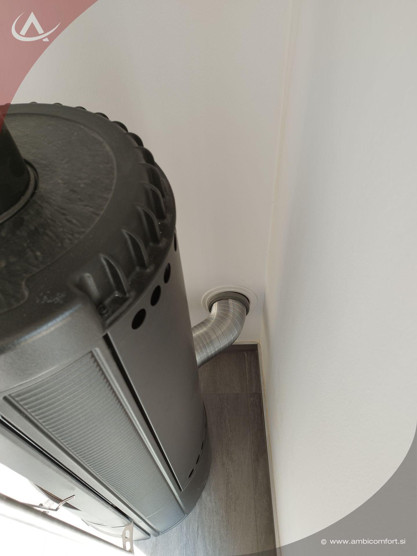 Peč na drva La Nordica Marlena je opremljena s priključkom za zajem zunanjega zraka za izgorevanje.