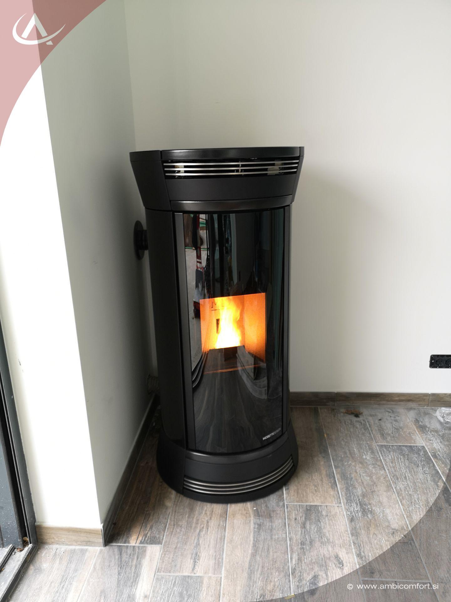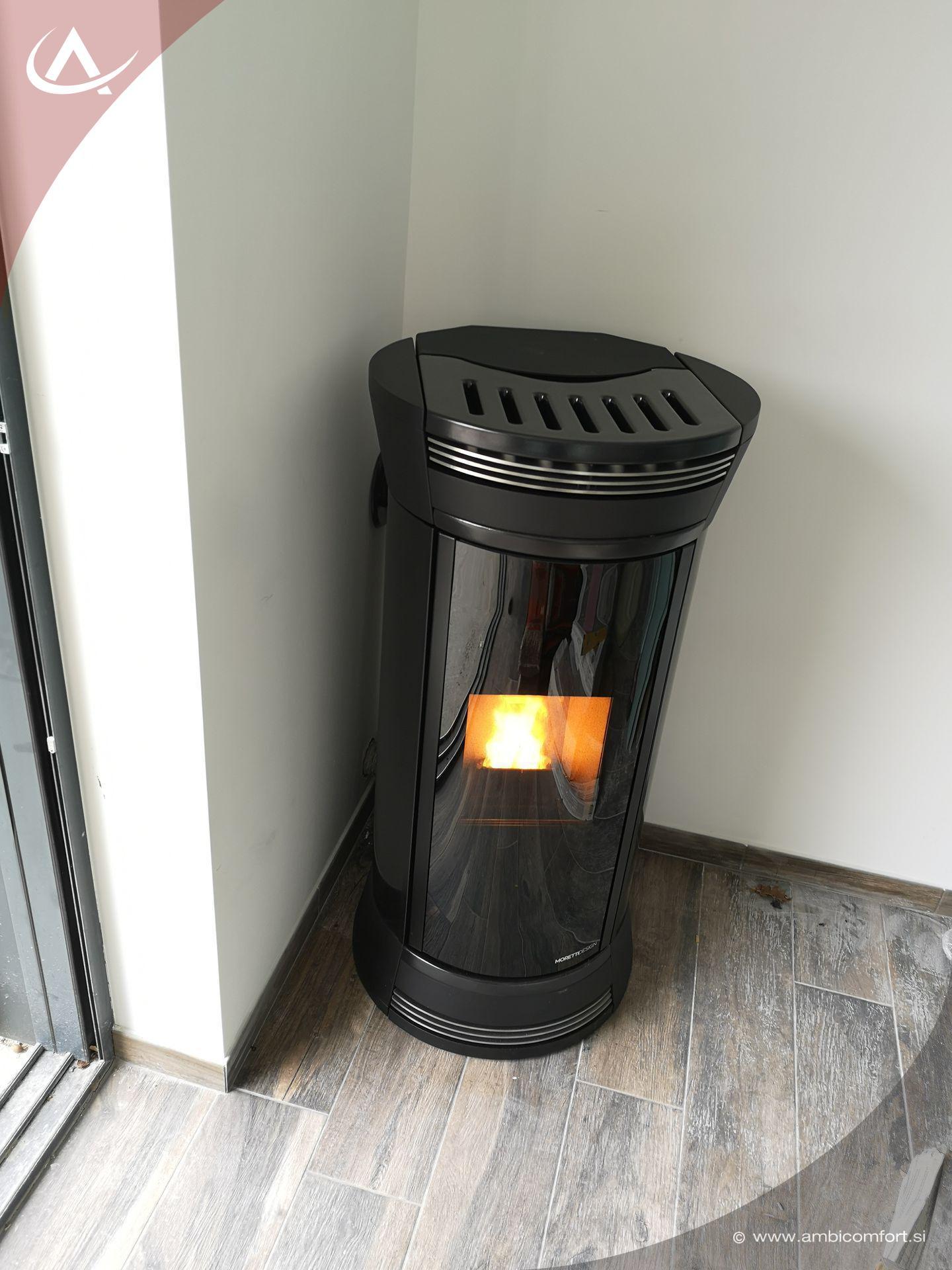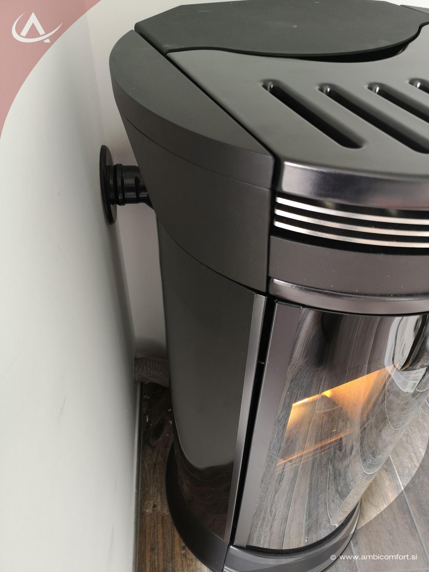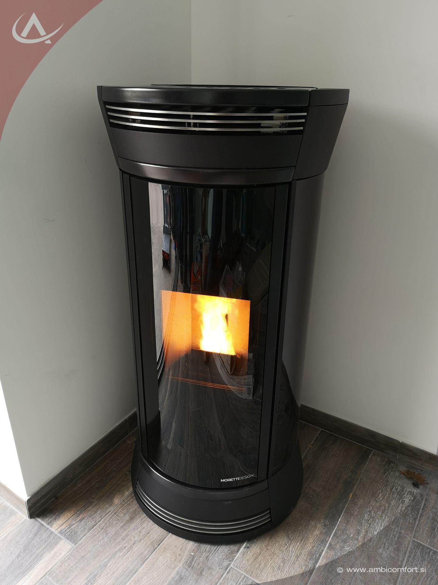 Kaminska peč na pelete Moretti Design Clessidra je prepričala predvsem zaradi ekskluzivne oblike in fine dodelave.