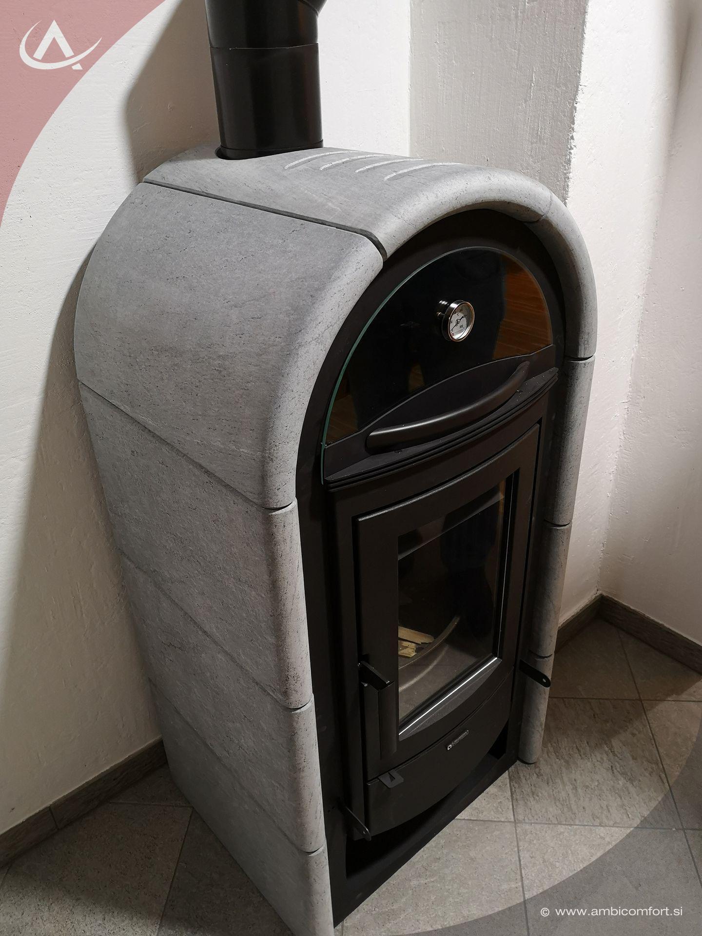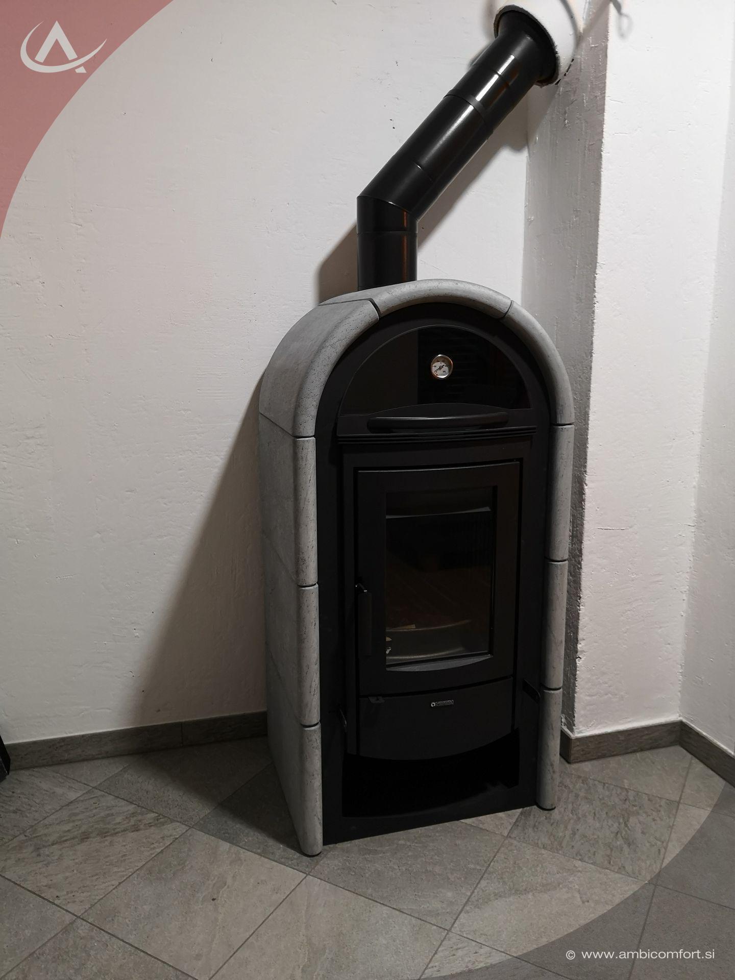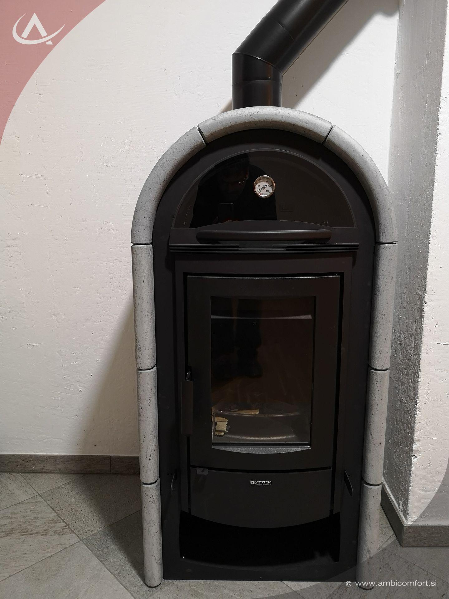 Peč s kuriščem iz litega železa za učinkovit in trajen prenos toplote v prostor. Vrata kurišča so opremljena s steklom za enkraten pogled na plamen.