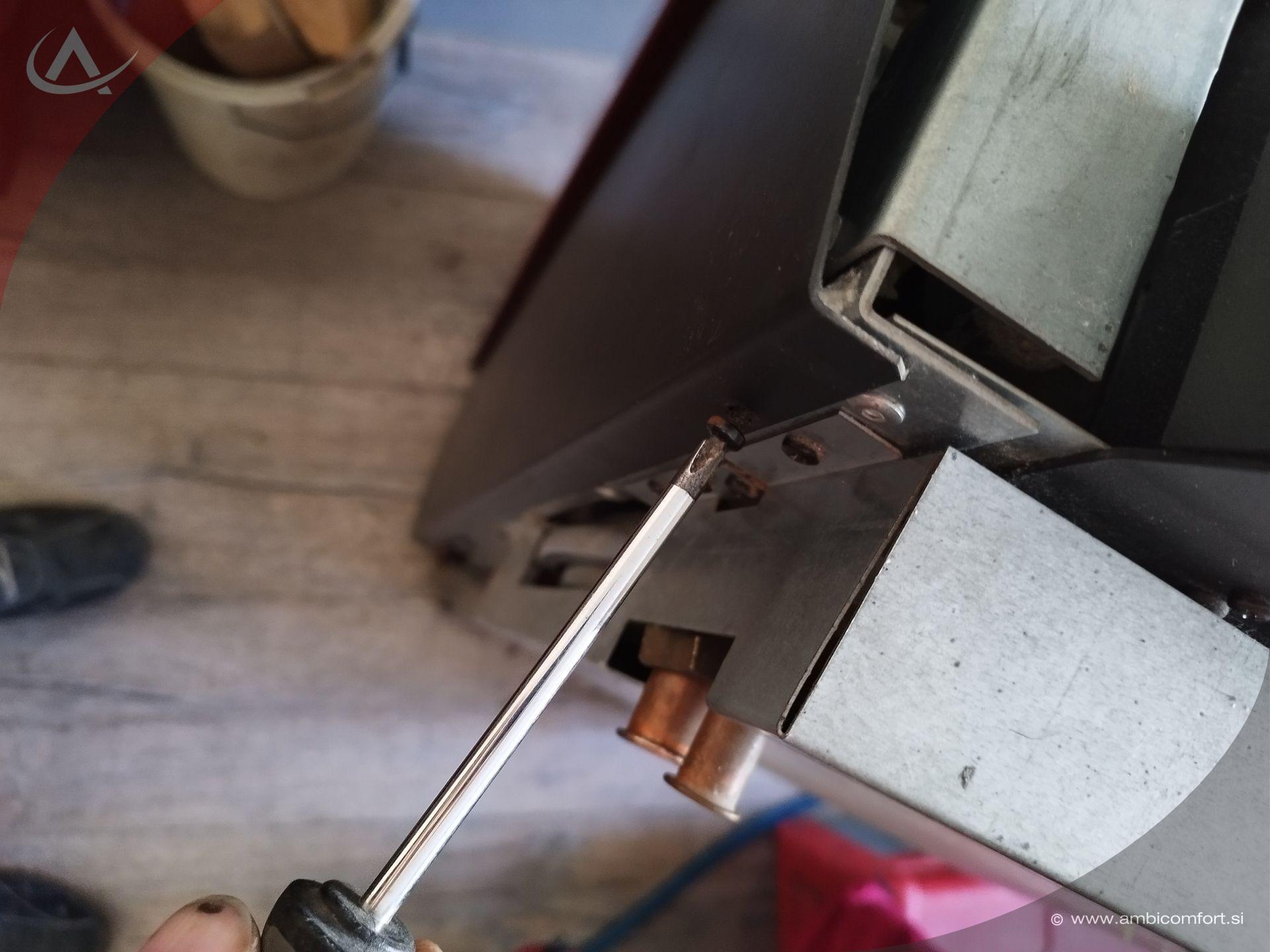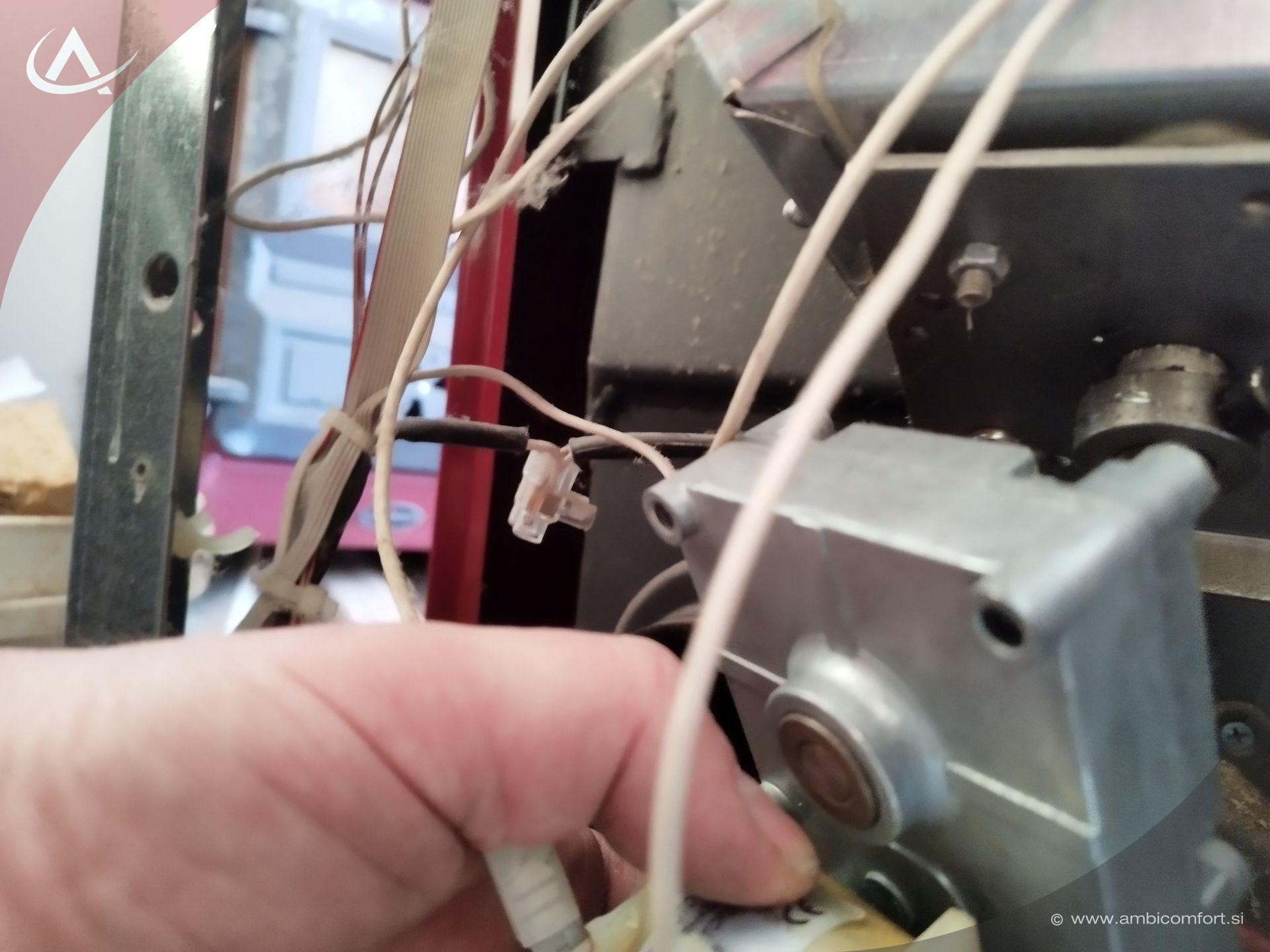 Z izvijačem odtisnemo čeljusti, ki držijo svečko. Svečka je povezana z električnima kabloma na elektronsko ploščo. Pri namestitvi nove vžigalne tuljave za pelete moremo paziti, da ne preveč poglobimo svečke, zato si je dobro zapomniti globino namestitve stare svečke.