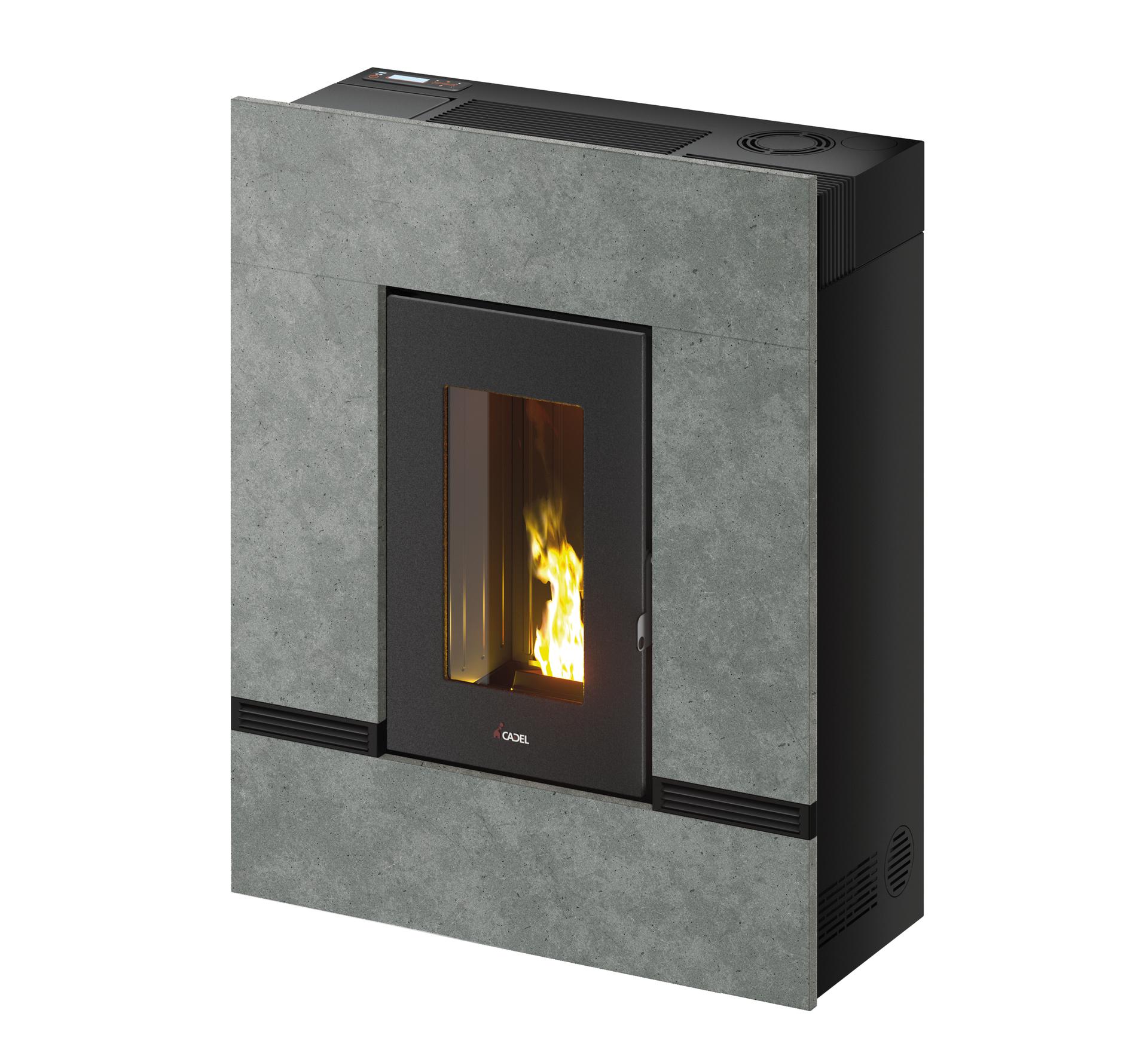 Visoko zmogljiva, kanalska peč z odvodom dima na zadnji strani. Minimalistična zasnova z dvema prezračevalnima rešetkama, nameščenima v spodnjem sprednjem delu, za boljšo porazdelitev zraka. Obloga iz naravnega kamna serpentino.