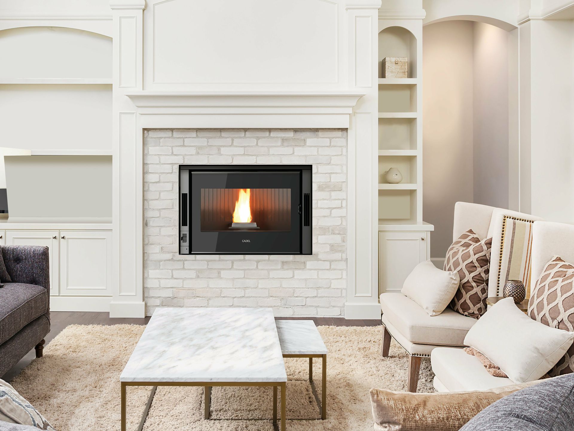 Vložek na pelete, ki se prilagaja vašim potrebam in se odlično ujema z odprtimi kamini. Z opcijskim kompletom lahko usmerite zrak za ogrevanje drugih prostorov v hiši. Kurišče ima veliko steklo, zato je zagotovljen odličen pogled na ogenj.