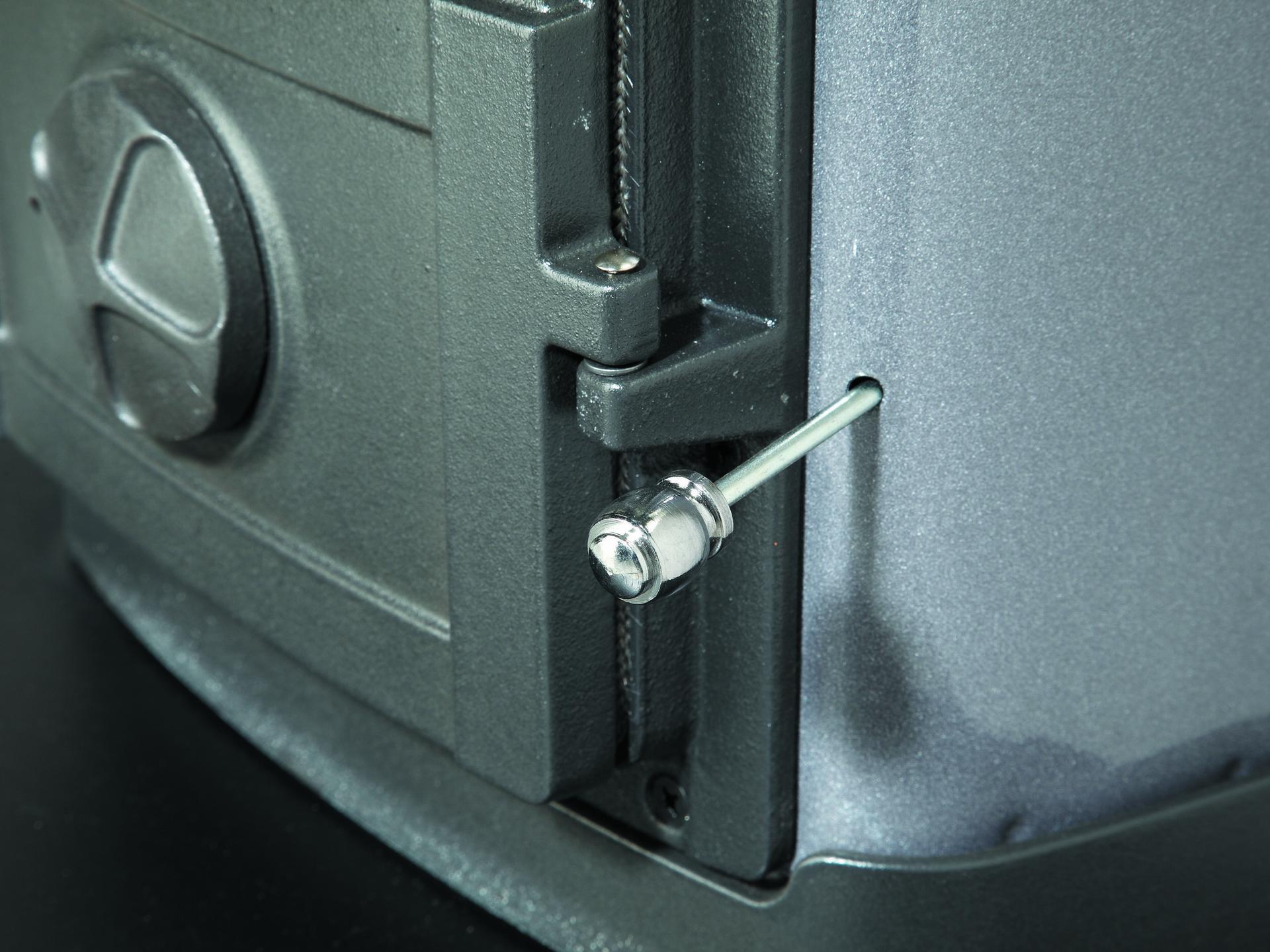 Peč na drva z oblogo iz emajliranega jekla. Primarni in sekundarni zrak. Dvojno izgorevanje. Velika kurilna vrata. Zgornji del, podnožje, vrata iz emajliranega litega železa.