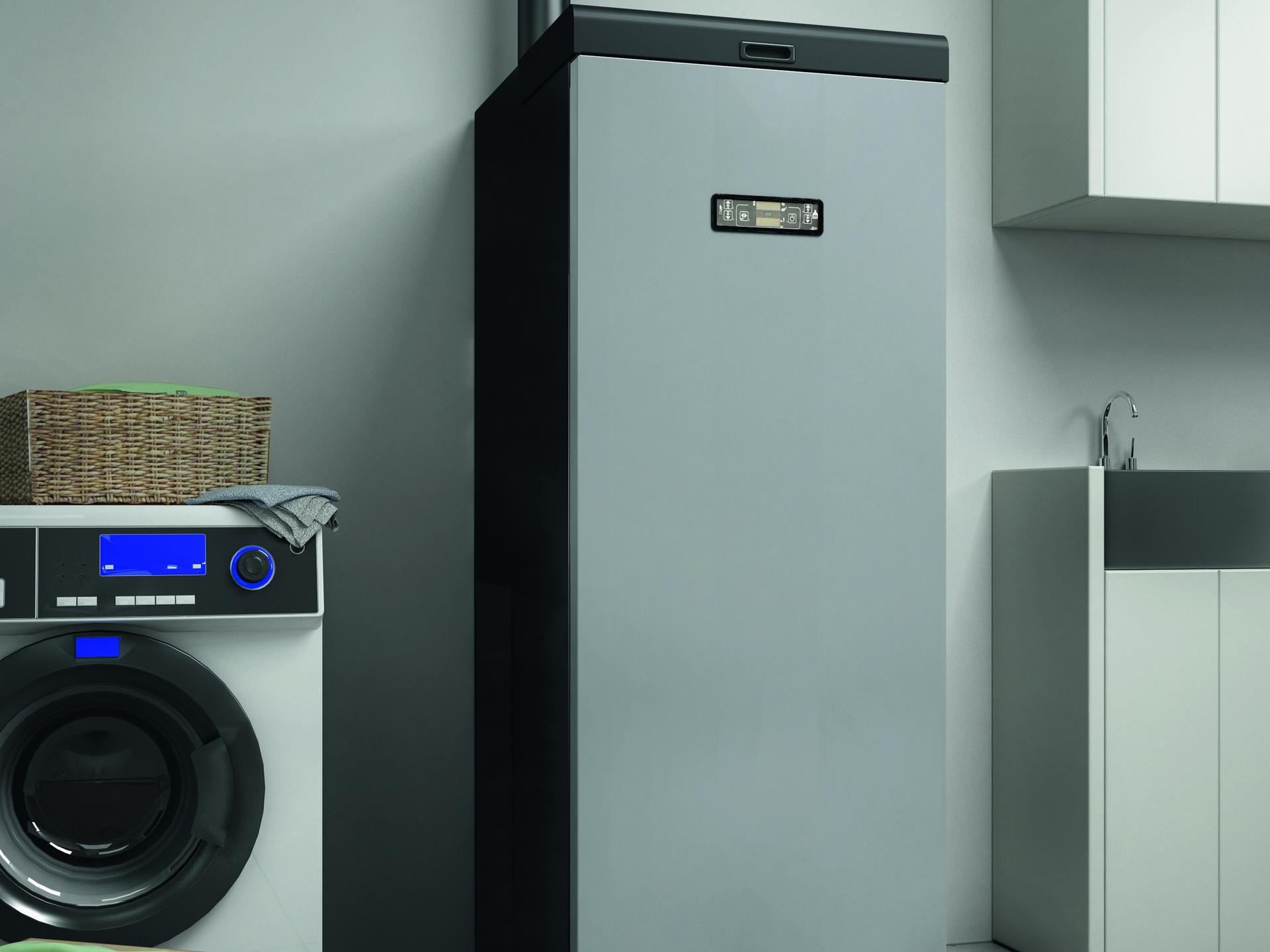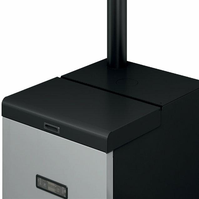 Kotel na pelete z dvojnimi vrati z minimalnim vzdrževanjem. Njegova kompaktna zasnova in možnost priključitve dimnika zadaj ali zgoraj omogočata namestitev v omejenih prostorih.