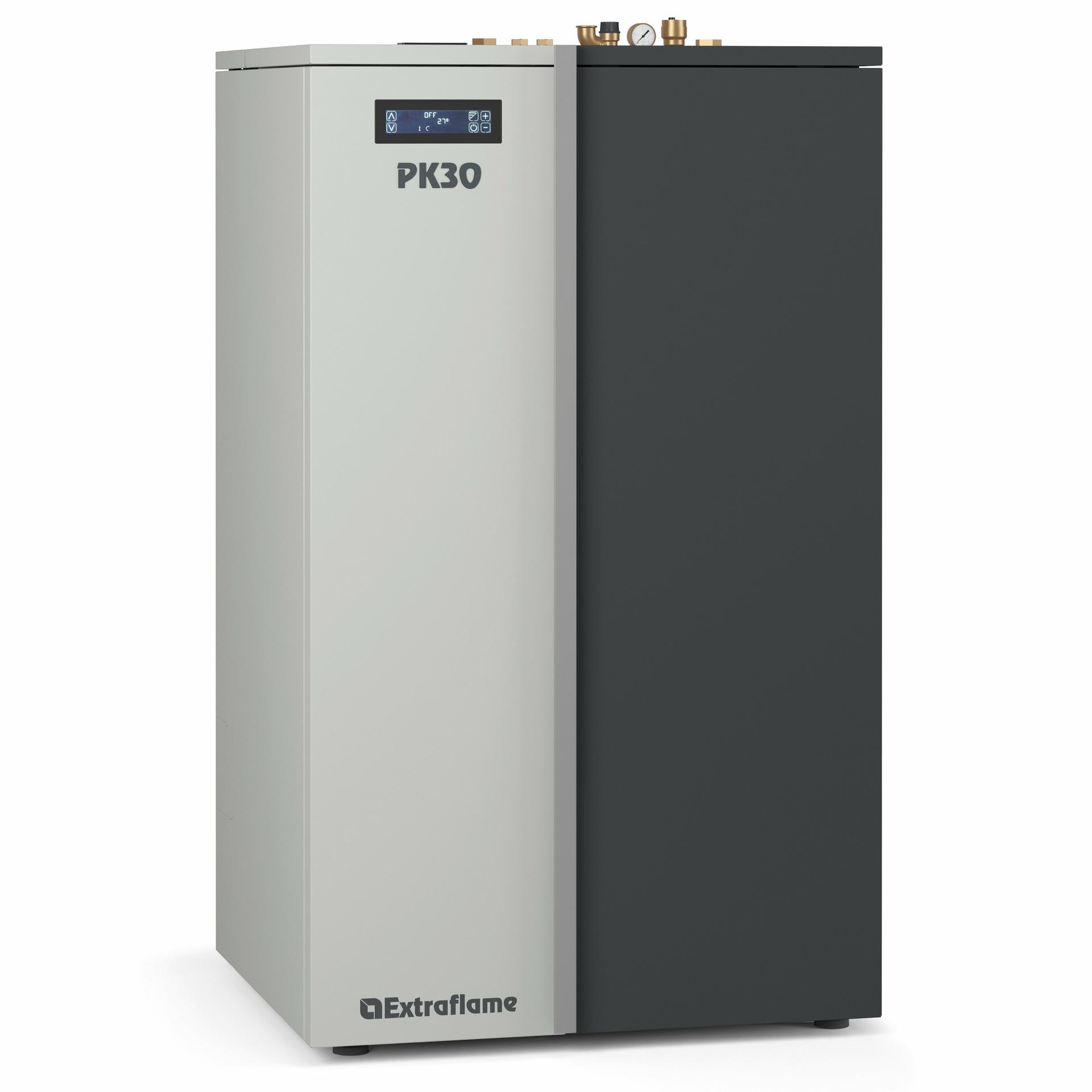 Zgorevalna komora iz debelega jekla, vrata in posoda kurišča iz litega železa. Samočistilna gorilna posoda z brezkrtačnim motorjem. Hiter vžig s keramično vžigalno tuljavo. Inovativni prilagodljivi sistem za prilagajanje in izenačevanje dovoda zgorevalnega zraka. Plaščni in cevni izmenjevalnik s samodejnim čiščenjem.