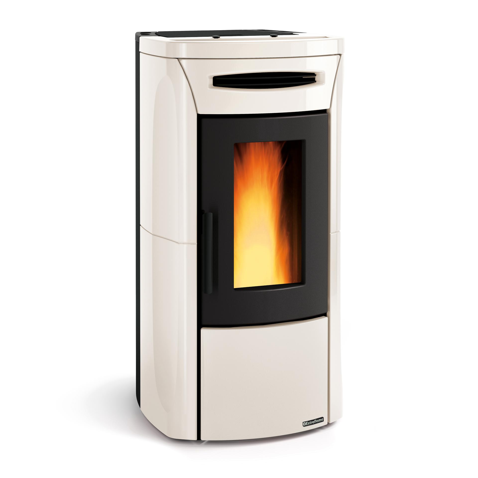 Termo peč z elegantno zunanjo oblogo v majoliki, ki se zlahka vključi v sodobno in tradicionalno okolje.
