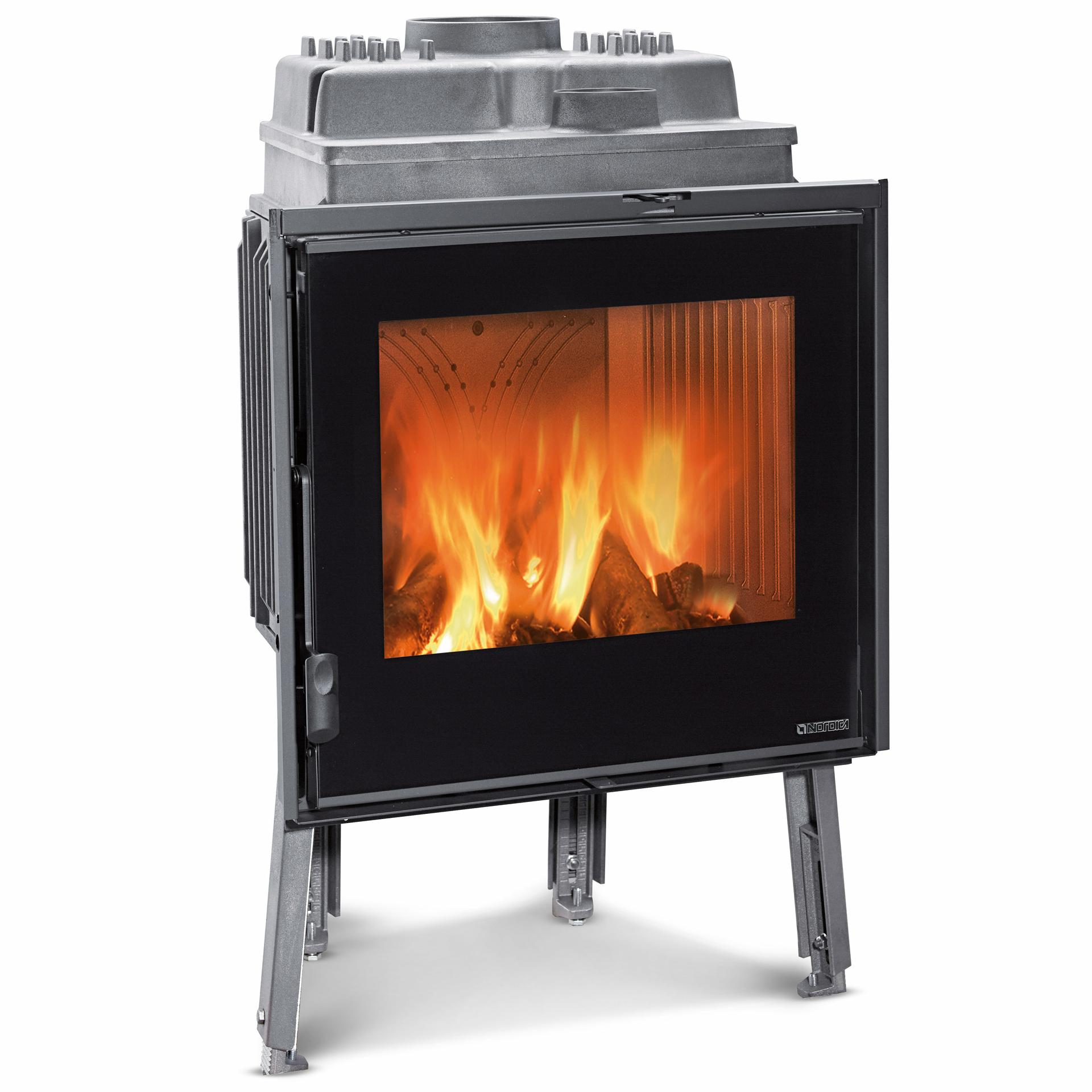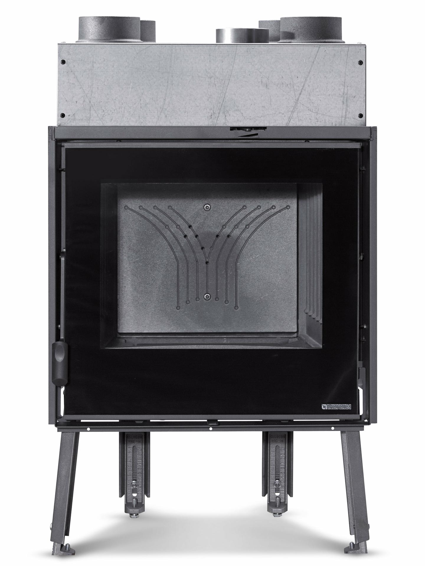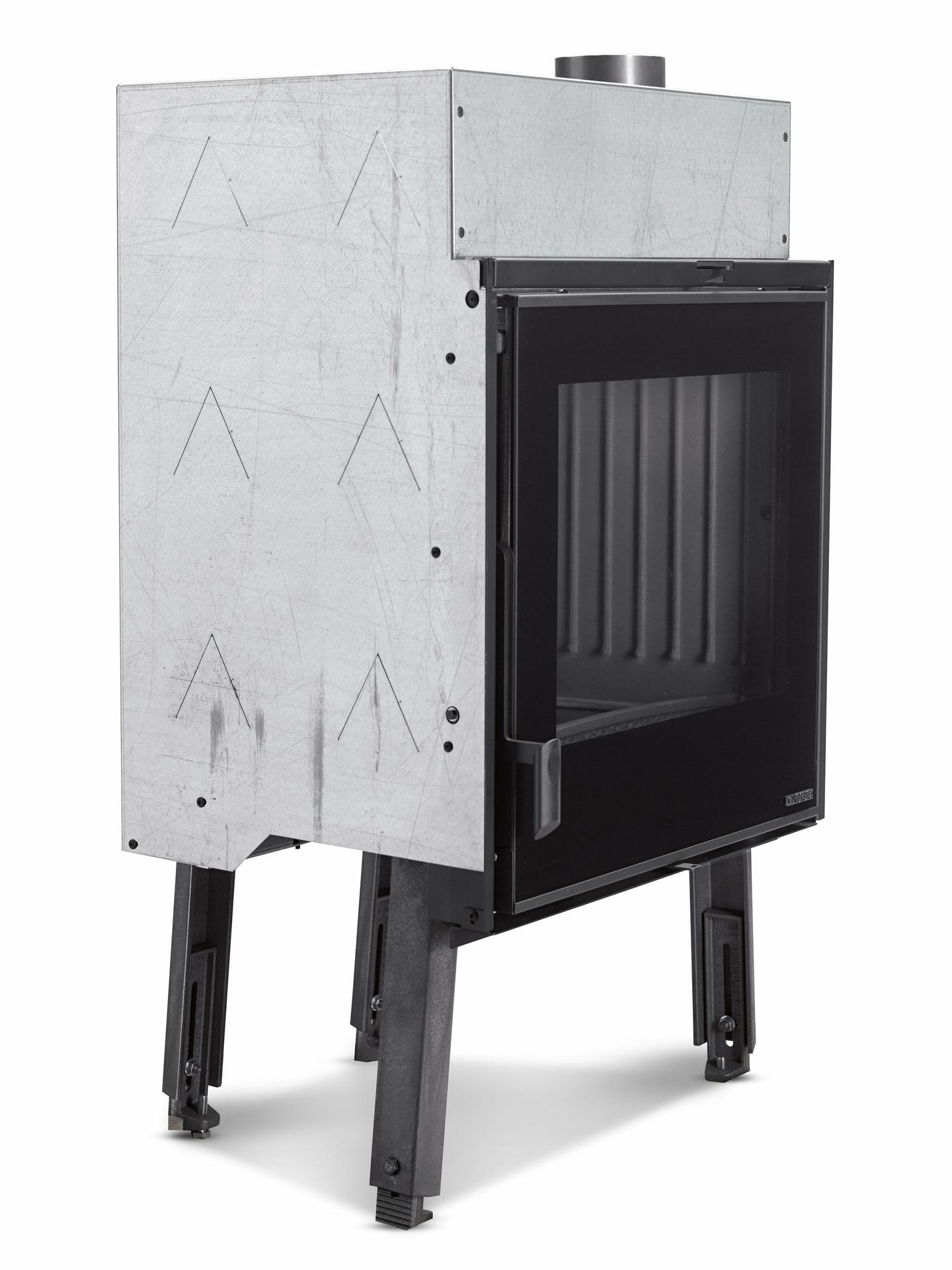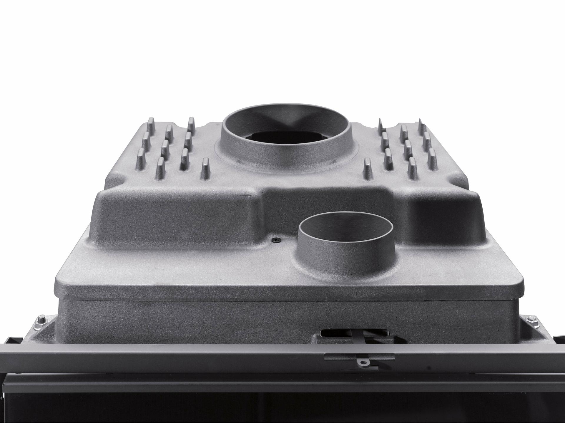 Ognjišče na drva za kamine s strukturo in notranjo oblogo ognjišča iz litega železa. Nastavljiv primarni in sekundarni zrak za boljši nadzor zgorevanja. Sistem naknadnega zgorevanja za nizke emisije. Keramično steklo.