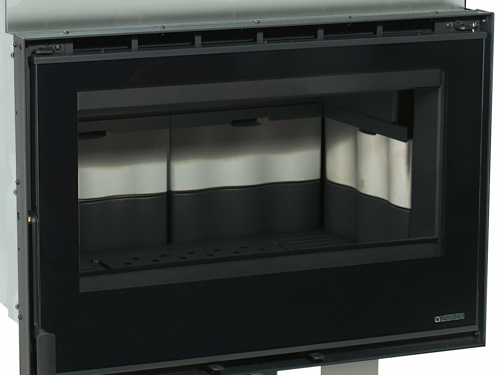 Vodni kamin na drva z varnostno napravo DSA (ventil DSA ni vključen). Notranja obloga kurišča iz litega železa in Nordikerja. Debela jeklena konstrukcija. Keramično steklo.