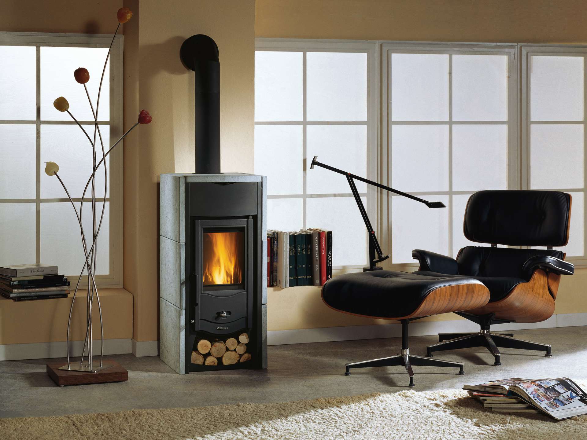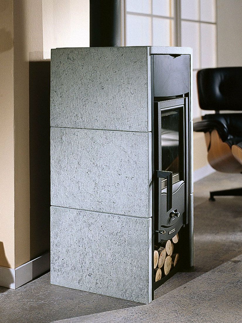 Peč na drva z zunanjo oblogo iz naravnega kamna. Obloga kurišča je iz litega železa. Nastavljiv primarni in sekundarni zrak za boljši nadzor zgorevanja in nizke emisije. Emajlirana litoželezna vrata, keramično steklo. Držalo za polena.