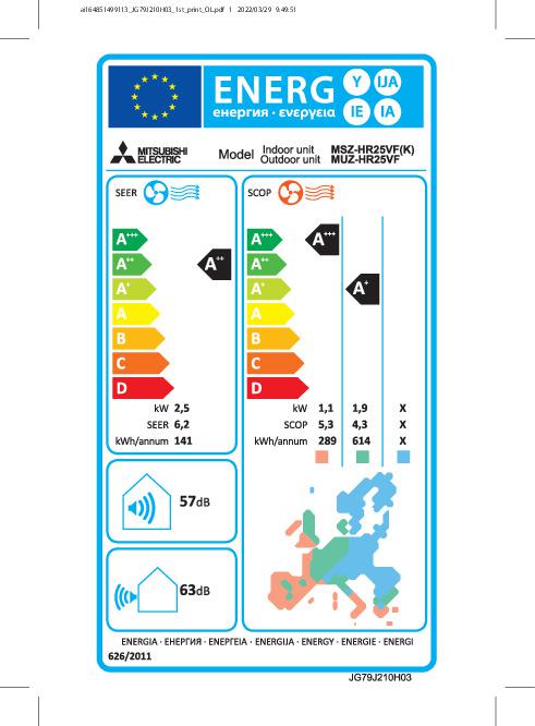 Mono split klimatska naprava Mitsubishi MSZ-HR25VFK / MUZ-HR25VFSplošne informacije o izdelku |