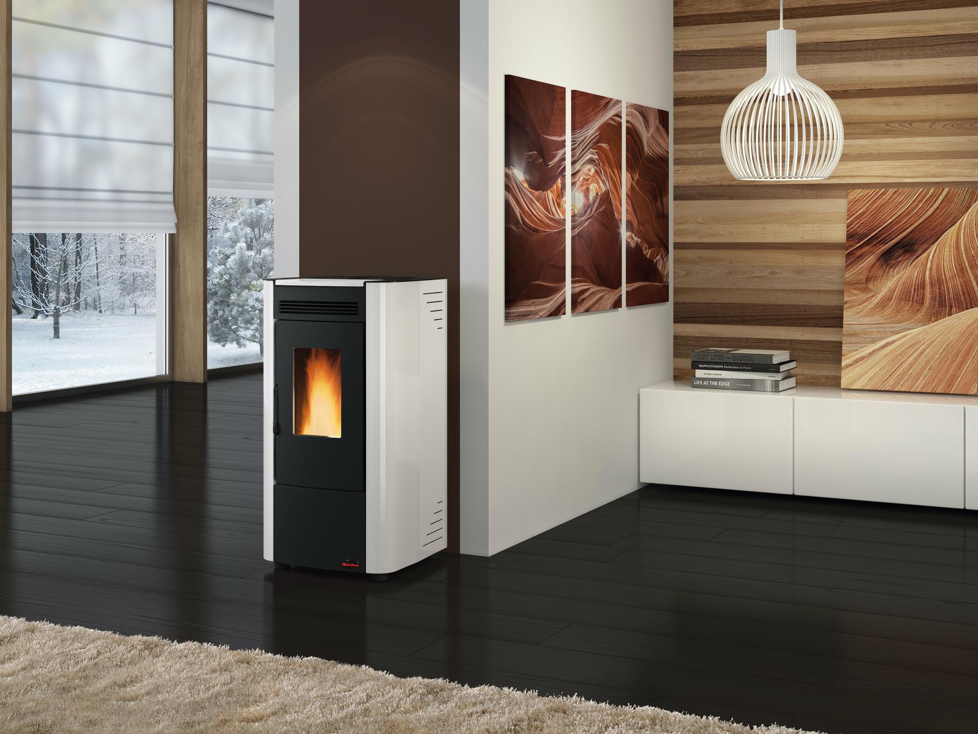 Ventilatorska kompaktna peč na pelete z barvano jekleno oblogo in funkcijo Comfort.