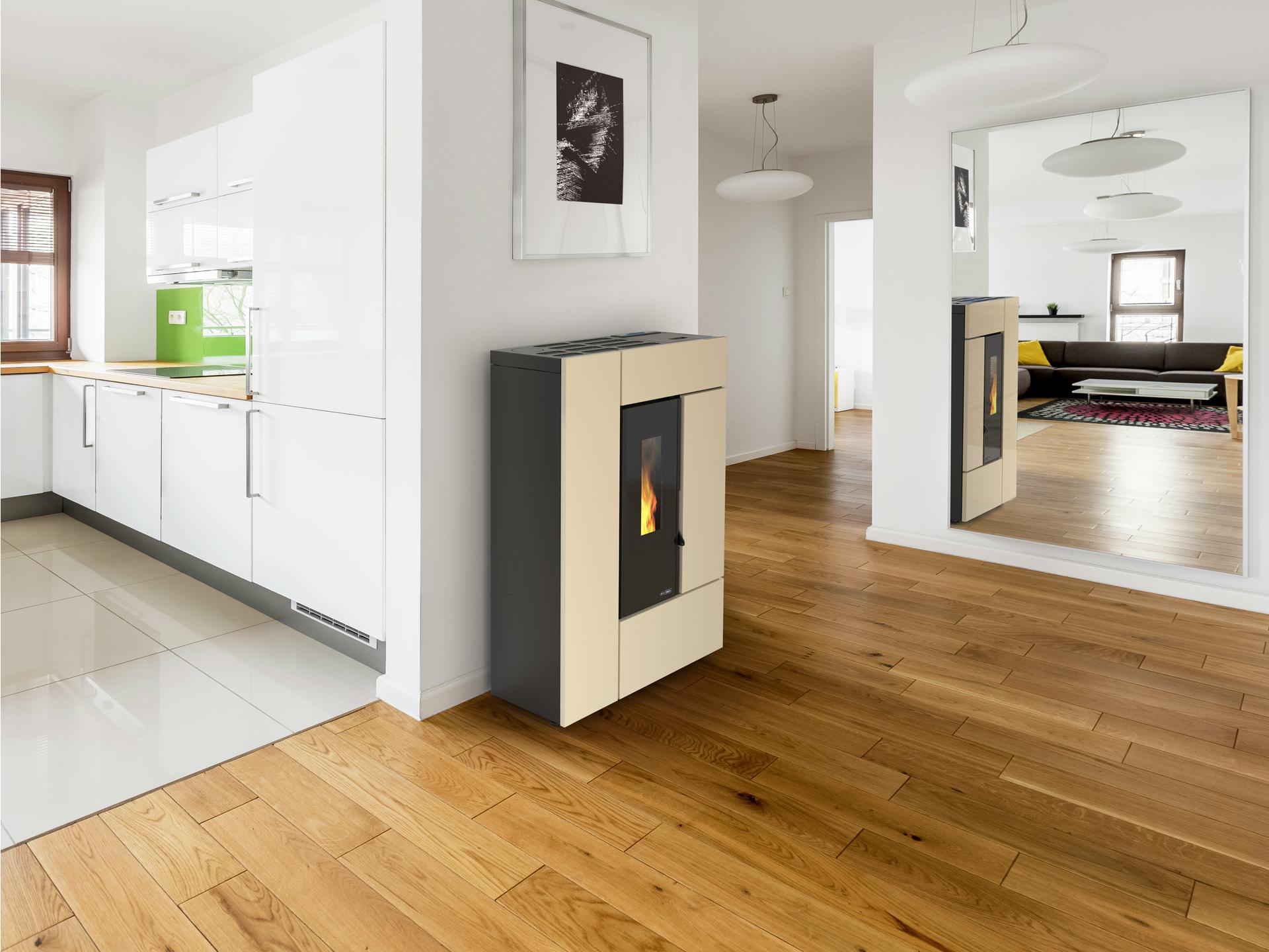 Sistem razvodov toplega zraka z ločenim termostatskim motorjem, ki ga je mogoče izključiti, največja dolžina 8 metrov. Vpih toplega zraka na sprednjem delu peči s funkcijo Comfort. Dvojna steklena vrata.