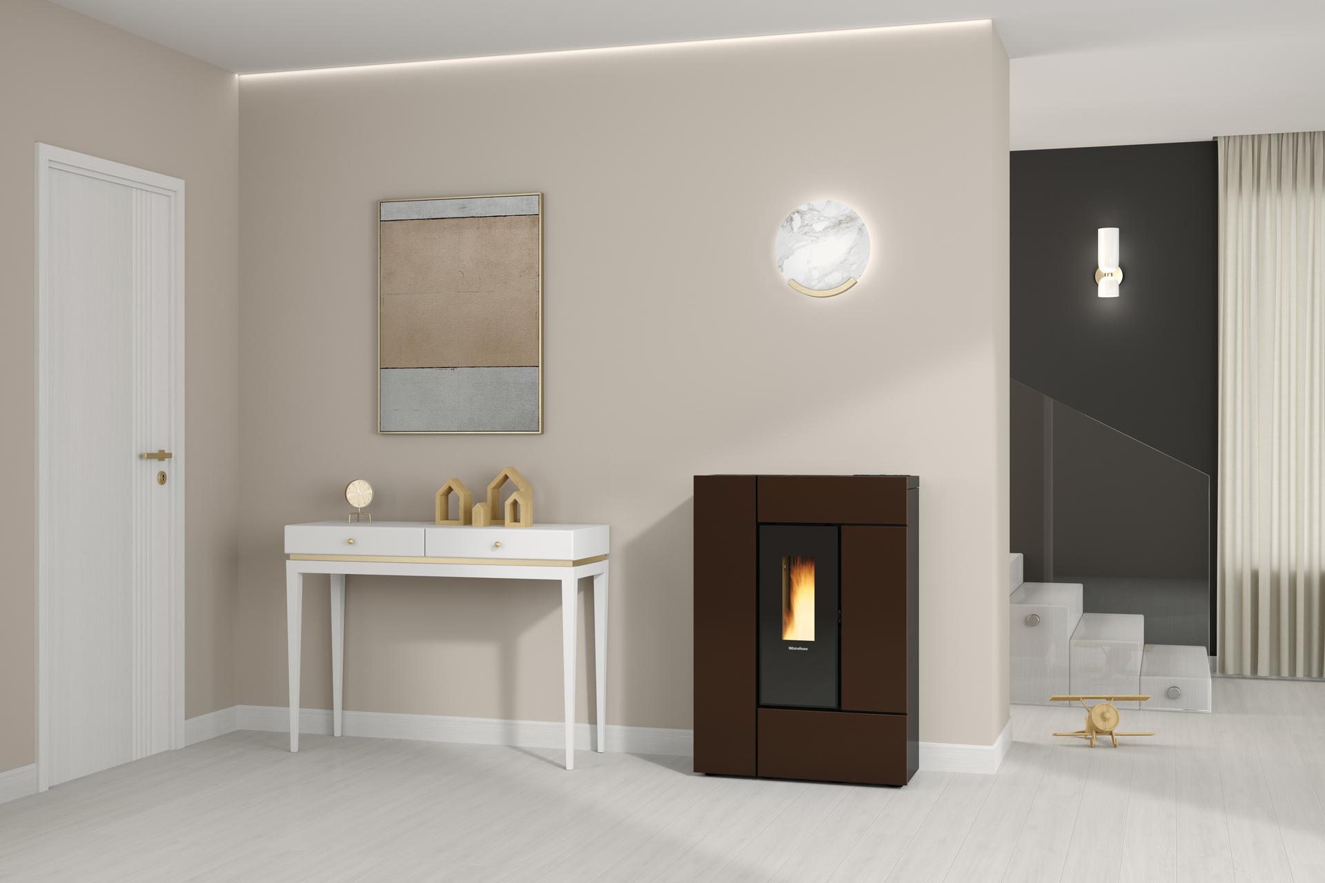 Kompaktna in elegantna peč, ki jo je mogoče namestiti v ozke prostore, tudi glede na možnost izbire priključkov za odvod dima na zadnji strani ali na vrhu. Hermetična zasnova zagotavlja večjo varnost in zmogljivost.