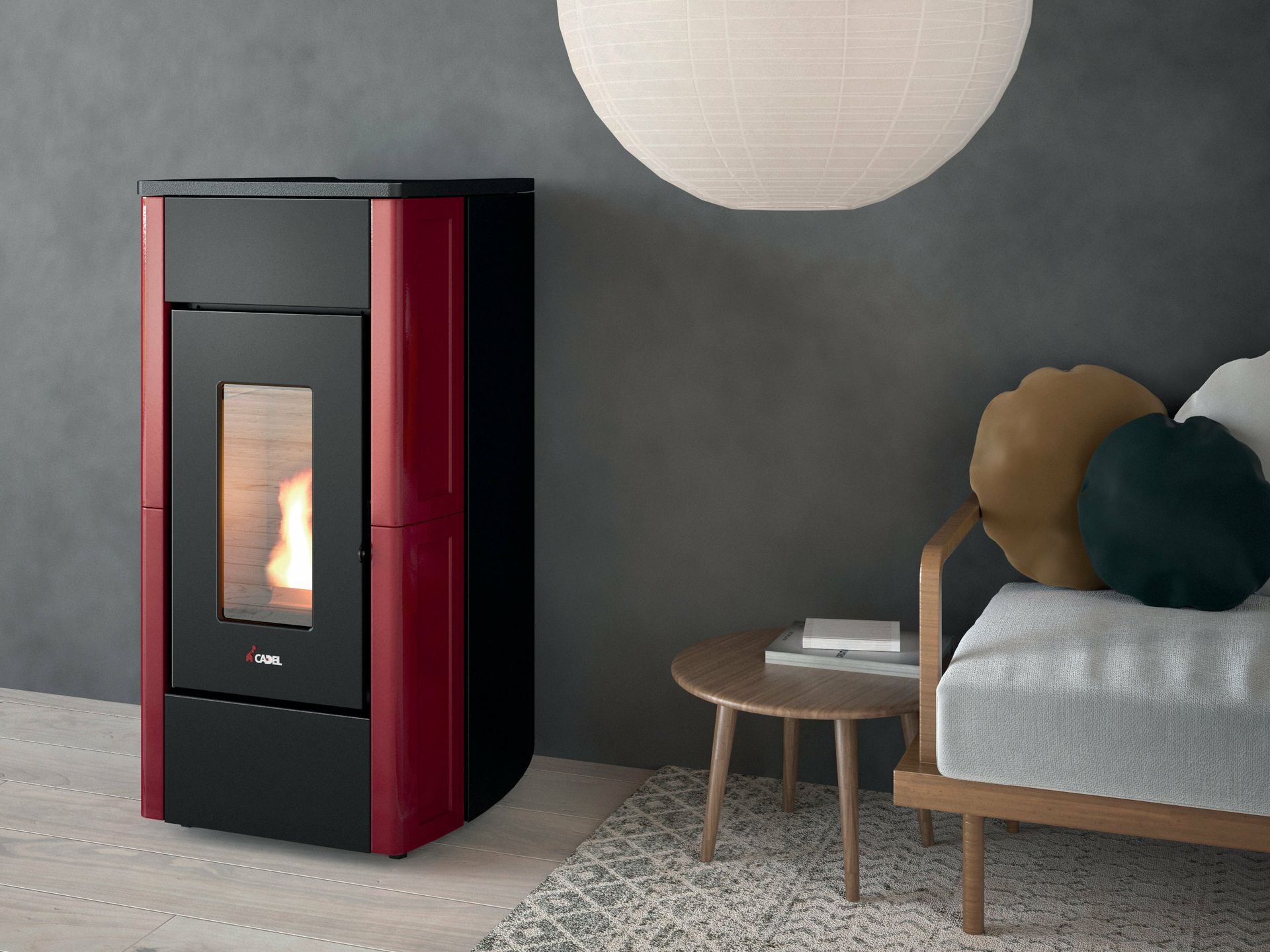 Peč na drva pelete z obnovljenim videzom z novo oblogo jeklenih stranic in z novo obliko litoželeznega zgornjega dela ter z inovativnim kuriščem. Serijsko je na voljo hermetična komora; keramične stranice.