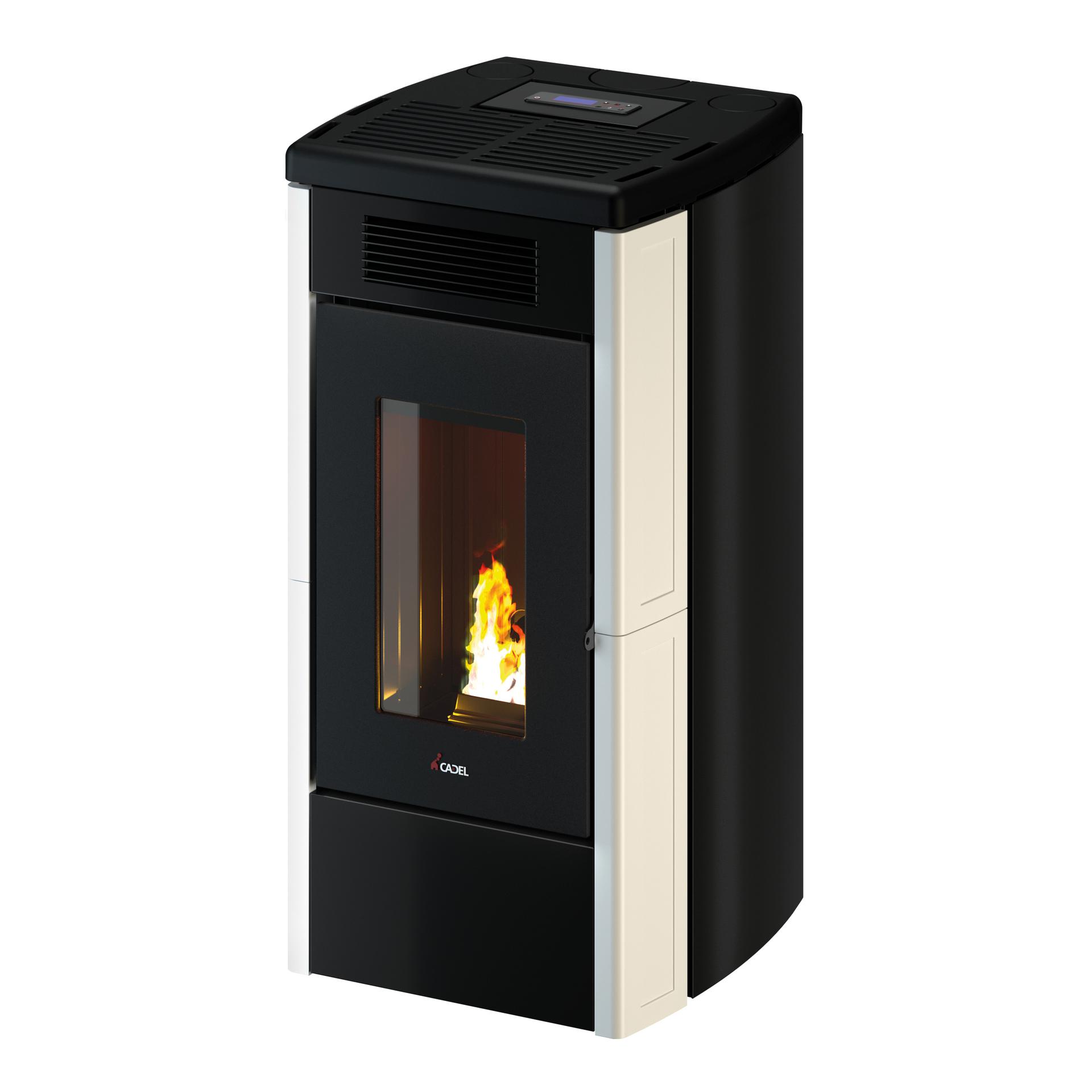 Hermetična peč na pelete z dvojnimi neodvisno krmiljenimi kanali za razvod toplega zraka. Zgorevalna komora, zgornji del in vrata so izdelani iz litega železa. Vgrajen Wi-Fi vmesnik za daljinsko upravljanje. Vsestranska, mogoče jo je namestiti s priklopom na zgornji ali zadnji dimniški priključek. Prevleka je iz pobarvanega jekla z vgrajenimi elementi iz majolike.