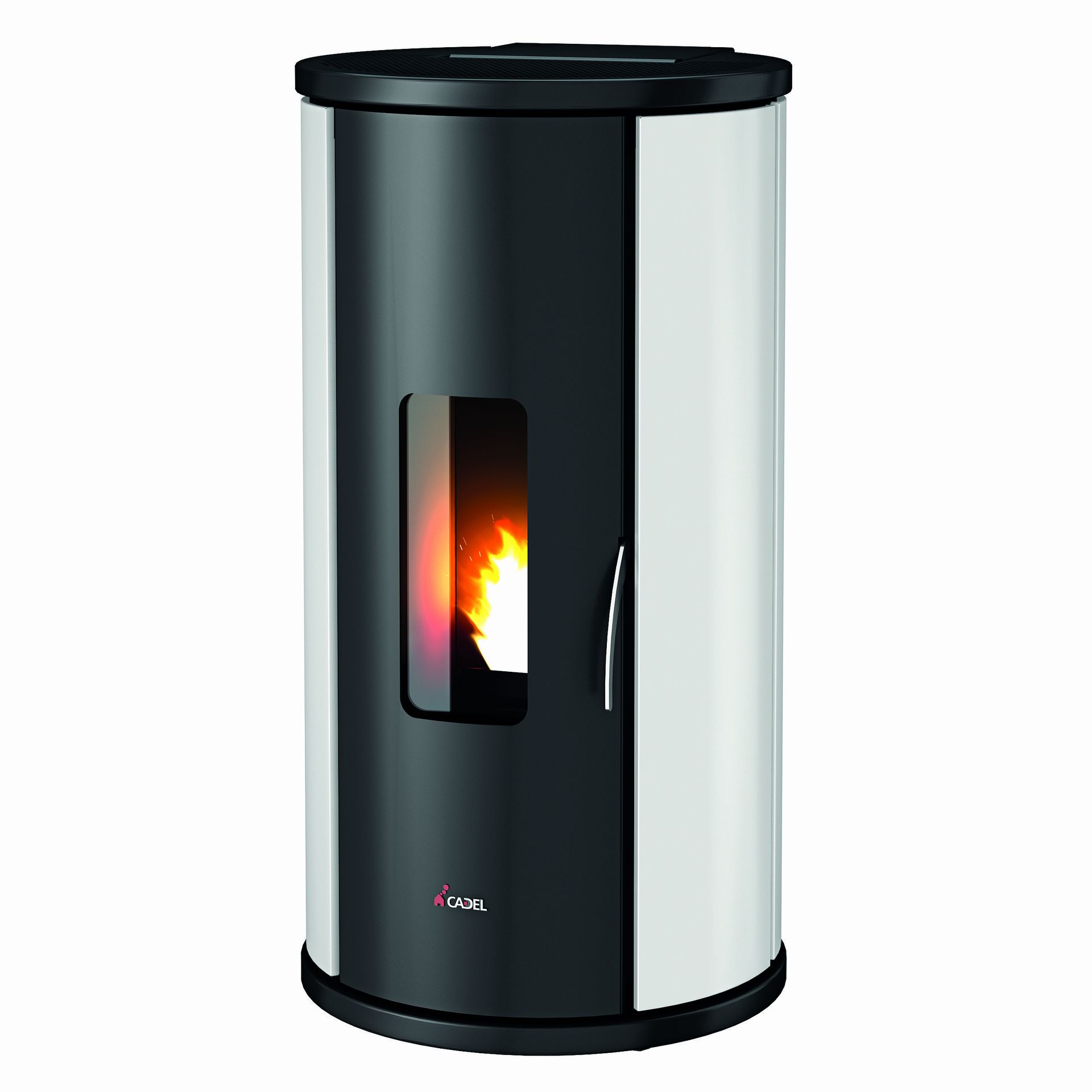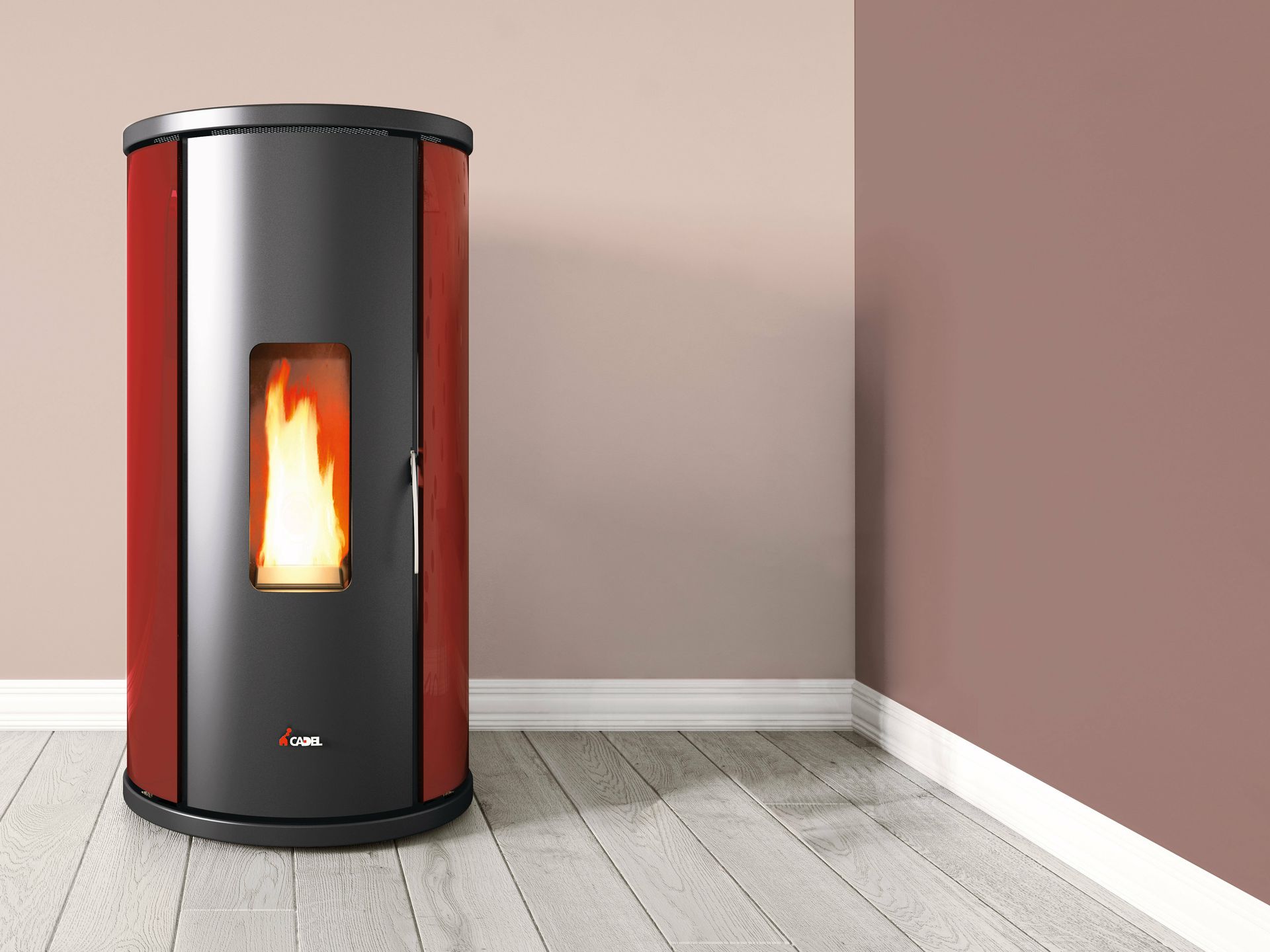 Peč na pelete z osnovno zasnovo in valjasto obliko, ki omogoča namestitev tudi v kot prostora. Z usmerjanjem vročega zraka lahko hkrati ogreva več prostorov v hiši.