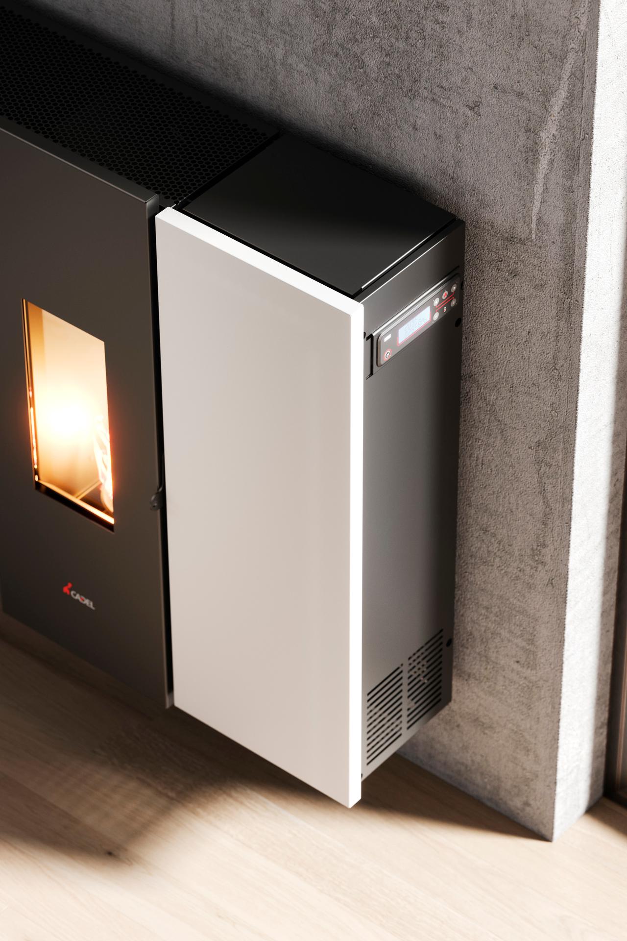 Peč na pelete Wall Plus 10 se ponaša s posebno zasnovo, omejeno globino in visoko močjo, zato je idealna za manjše, oziroma ozke prostore, kot so hodniki, in za ogrevanje več prostorov v hiši. Prevleka je iz pobarvanega jekla.