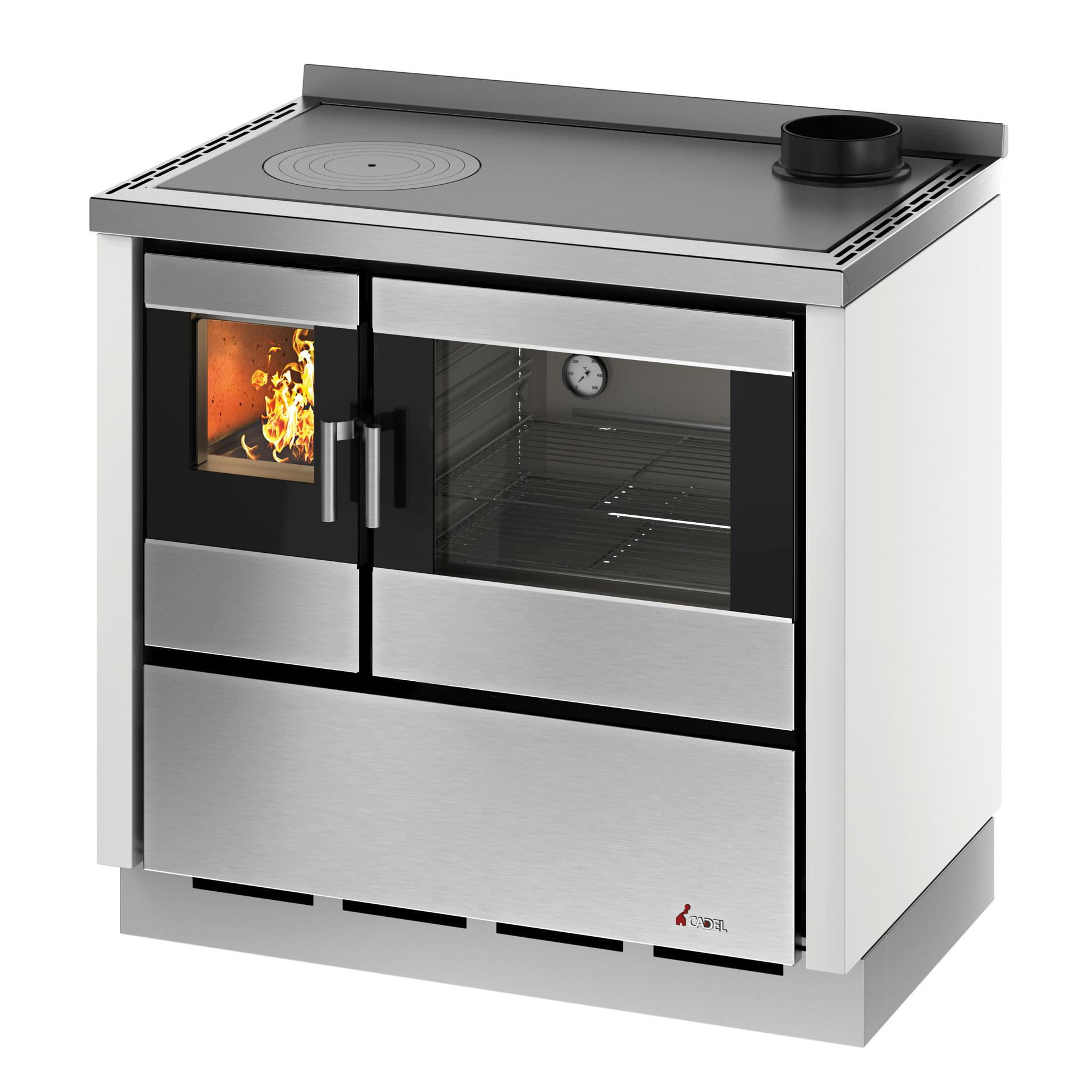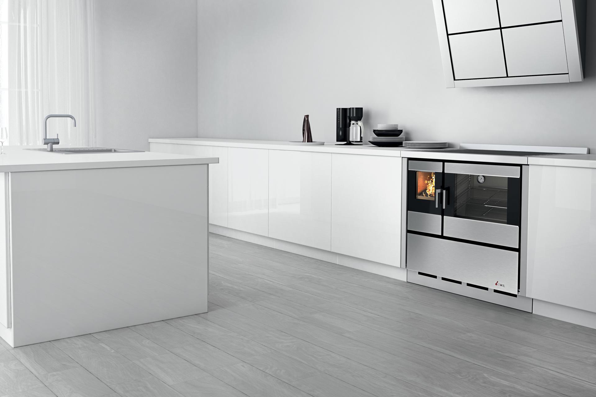 Najbolj presenetljiva značilnost tega vgradnega štedilnika na drva je veliko prostora, namenjenega pečici, velika steklena vrata, ki omogočajo pregled nad pečenjem hrane, in veliko kurišče, ki omogoča nadzor nad vsem. Velika pečica iz nerjavnega jekla zagotavlja enakomerno peko hrane in enostavno čiščenje notranjosti. Tudi litoželezna kuhalna plošča je enostavna za čiščenje. Velik, praktičen drsni predal omogoča, da je vse na dosegu roke, poleg tega pa je poskrbljeno za odlično funkcionalnost in učinkovitost za vse ljubitelje kuhanja in pečenja. Štedilnik na drva je opremljen z vpihom toplega zraka in s kompletom za osvetlitev pečice.