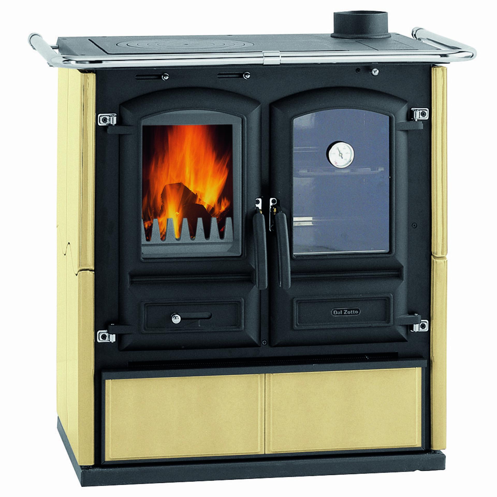 Štedilnik na drva z zunanjo oblogo iz majolike. Veliko ognjišče v celoti iz litega železa s panoramskimi vrati iz litega železa in keramičnim steklom. Pečica s panoramskim steklom in velik predal za drva. Zgornji del, dno in vrata so iz emajliranega litega železa. Primarni in sekundarni zrak z dvojnim izgorevanjem. Velik predal za drva.