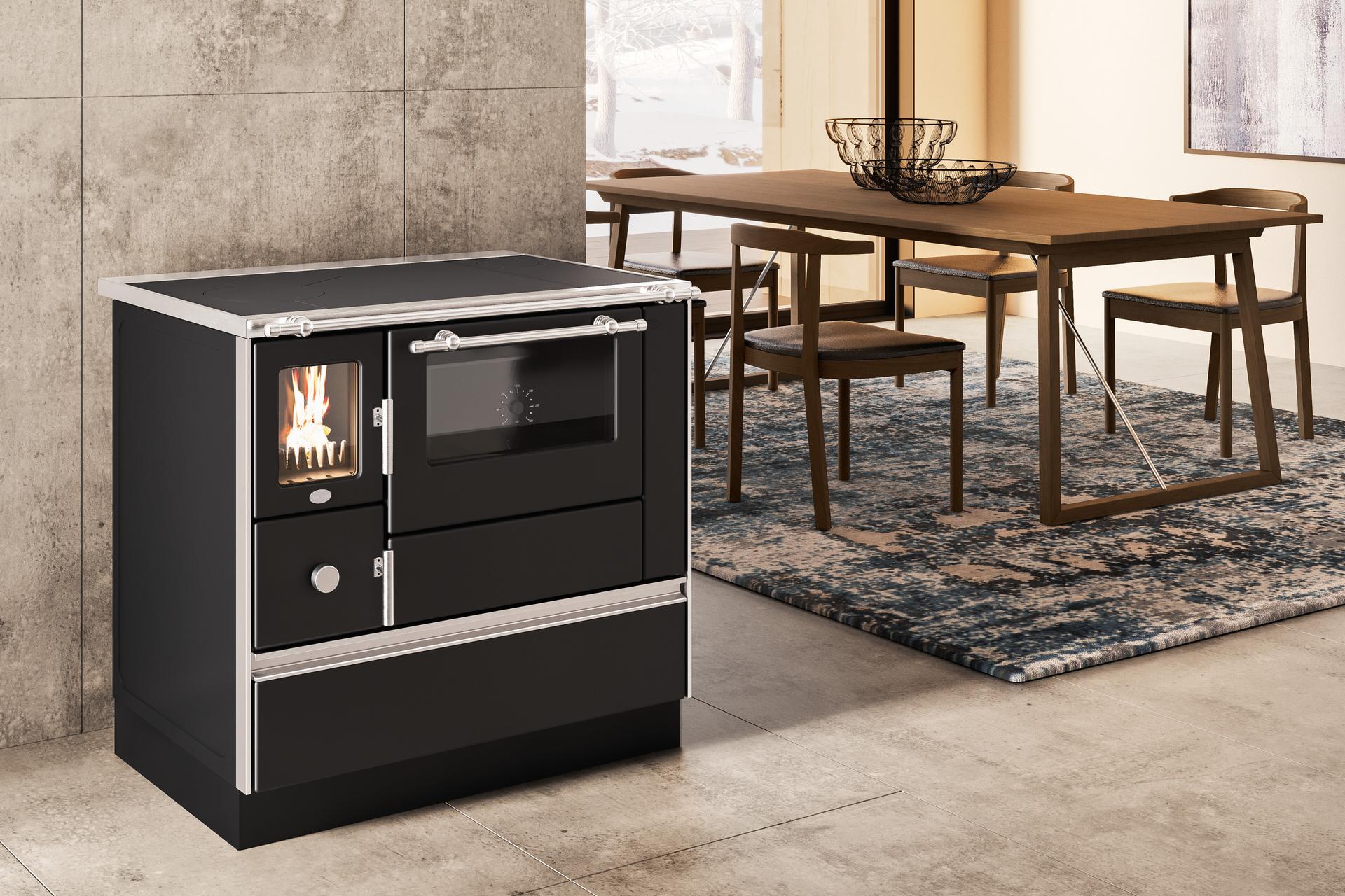 Peč na drva z zgorevalno komoro iz ognjevzdržnega kamna. Jekleno ohišje s predalom in vrati z dvojnim steklom. Odstranljiv predal za pepel za zbiranje pepela v ločenem predelu. Priključki za dimnik zgoraj desno, ob strani desno in zadaj desno.