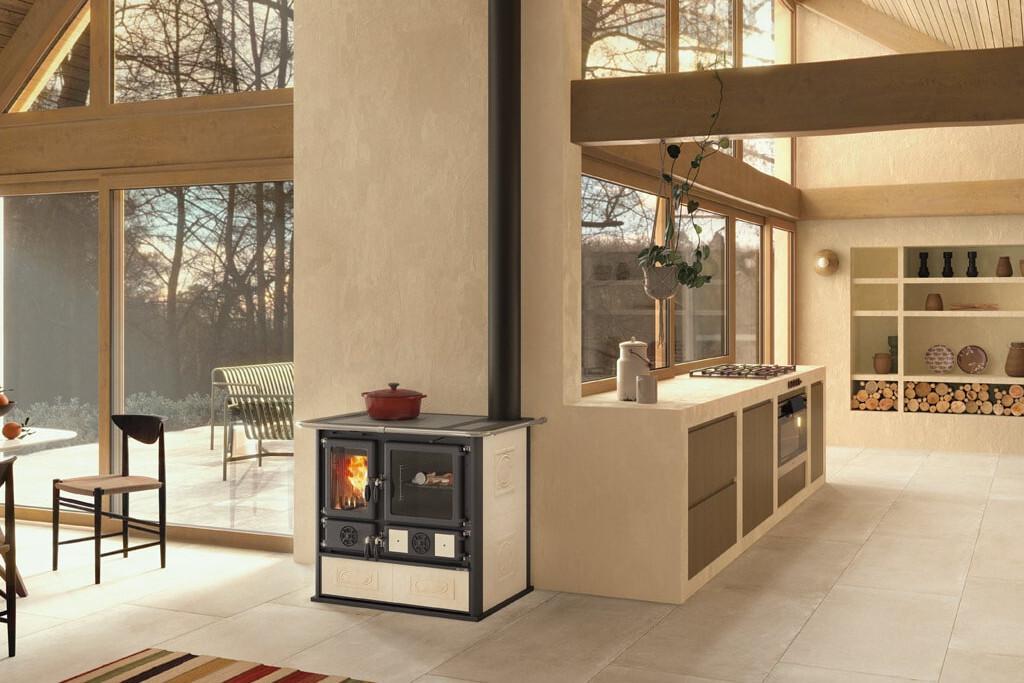Štedilnik na drva s tradicionalno zasnovo in oblogo iz majolike liberty. Zgornja plošča in obroči so iz poliranega litega železa. Vrata in okvir sta iz emajliranega litega železa. Prostorna pečica je iz emajliranega jekla.