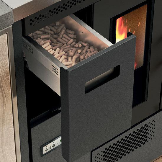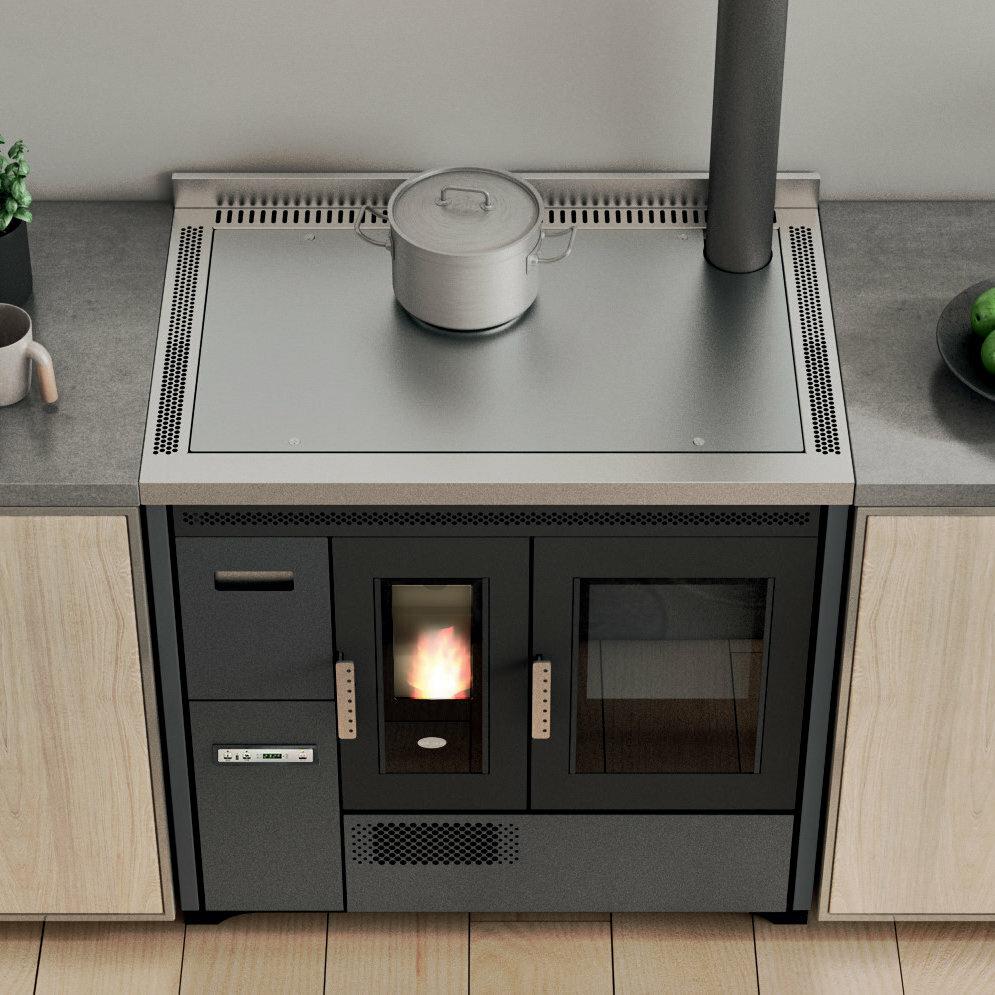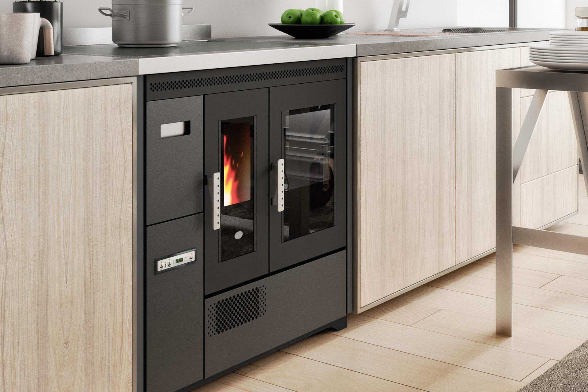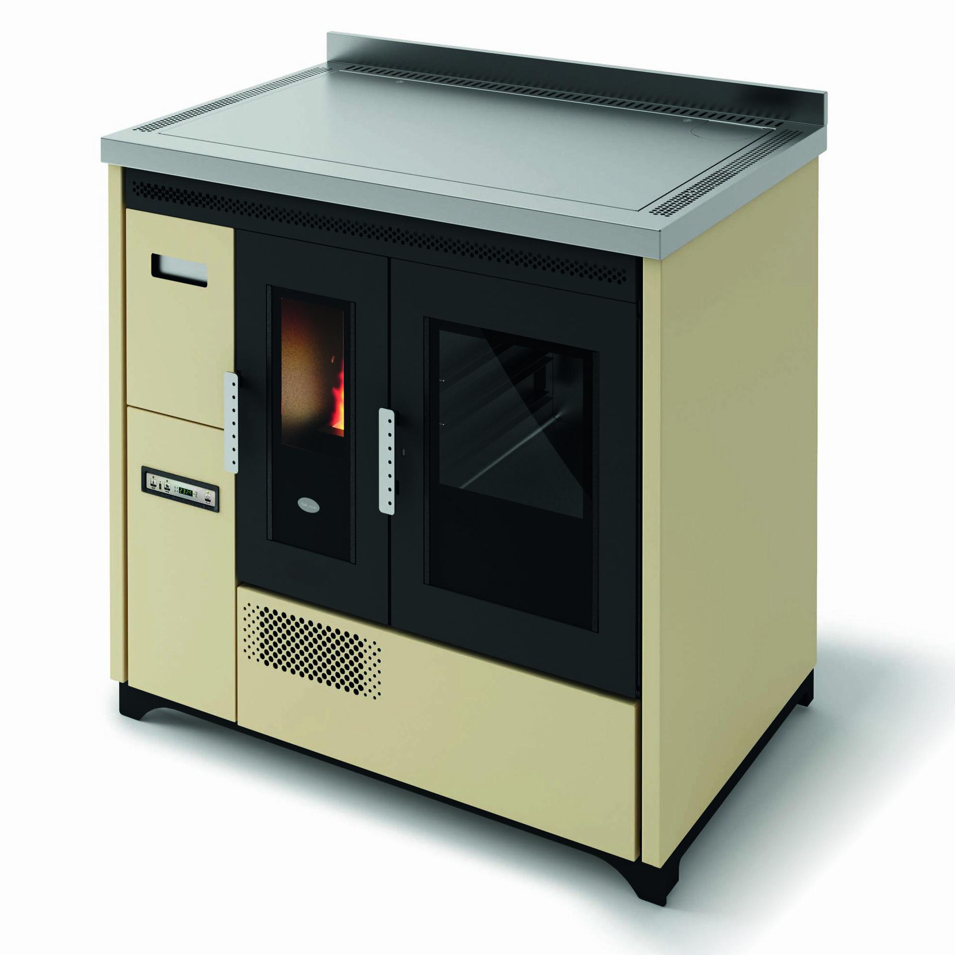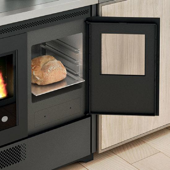 Štedilnik na pelete s pečico iz nerjavnega jekla, ki ga je mogoče namestiti kot samostojno ali vgradno enoto. Temperaturo pečice z razponom 120-230 °C je mogoče nadzorovati prek zaslona. Serijsko so priložena odstranljiva vodila za držalo pladnja, aluminijasti pladenj in držalo za pladenj. Ventilatorski vpih za distribucijo vročega zraka. Kontrolnik delovanja s 5 stopnjami moči s prikazom menija v 6 jezikih. Varnostni termostat in priključek za zunanji termostat.
