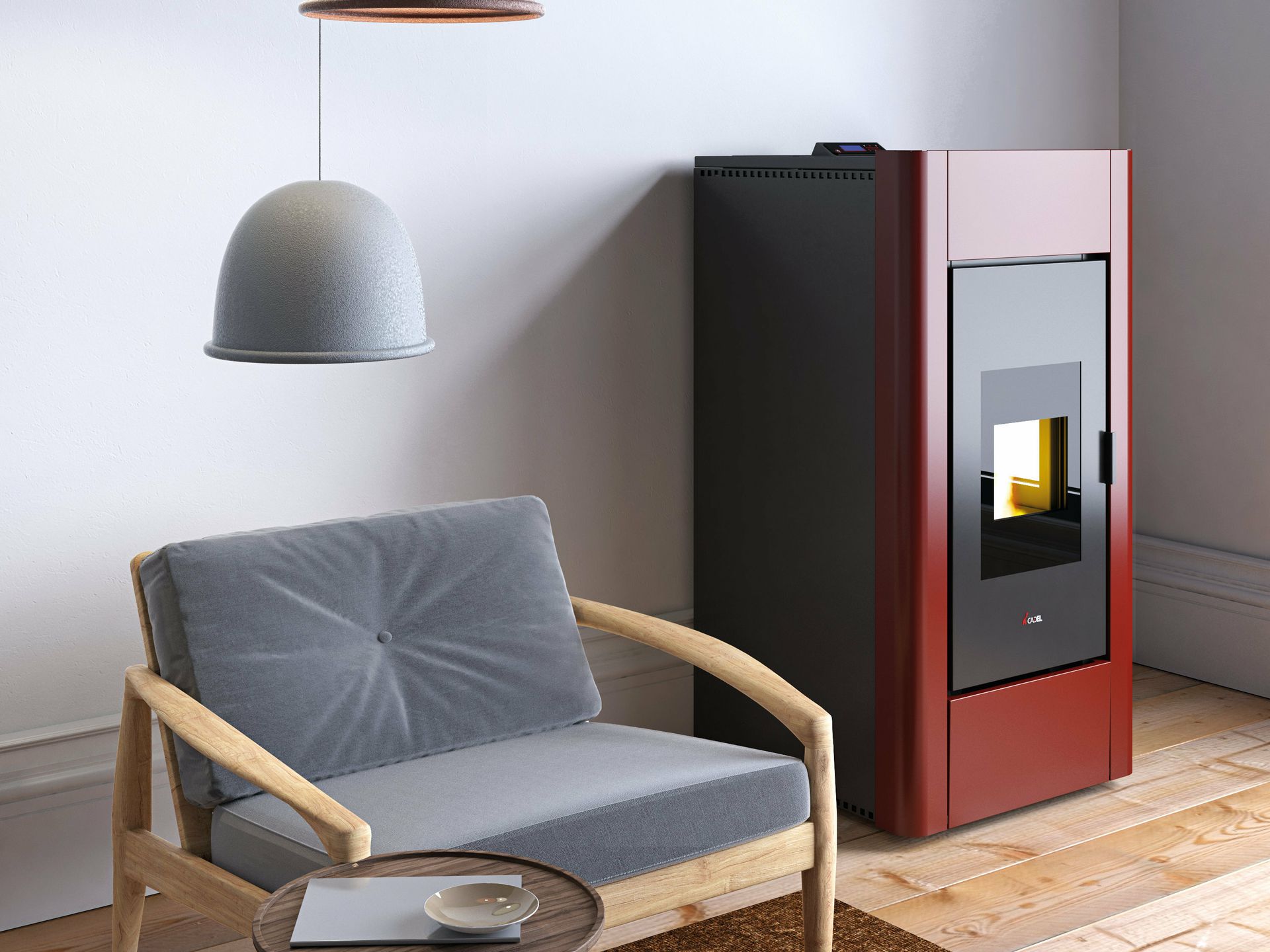 Kaminska vodna peč na pelete s preprosto in lepo zasnovo, ki jo odlikuje hidravlični sistem, katerega naloga je v celoti izkoristiti proizvedeno toploto, tako da jo razporedi po vseh prostorih v hiši.