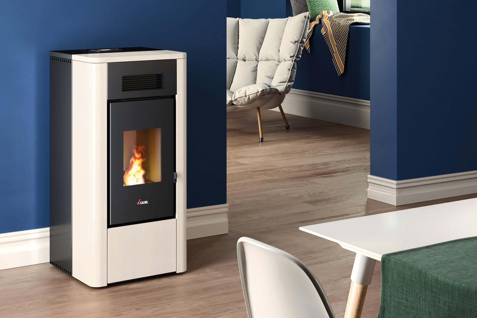 Ventilatorska vodna peč z minimalističnim elegantnim videzom in kovinskim ohišjem. Opremljena je s keramično vžigalno svečko Go Fast, samočistilno posodo kurišča in novo zgorevalno komoro certificirano s petimi zvezdicami.