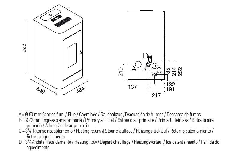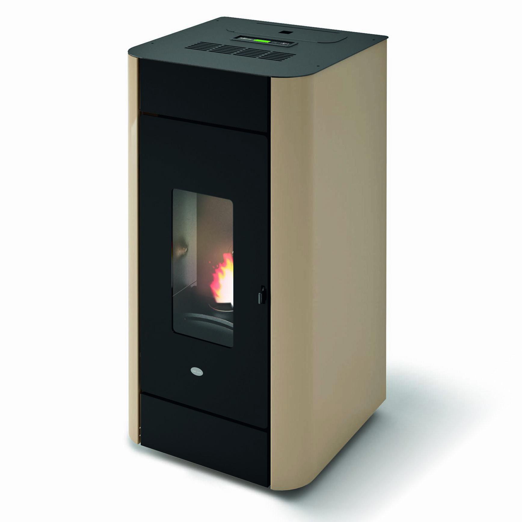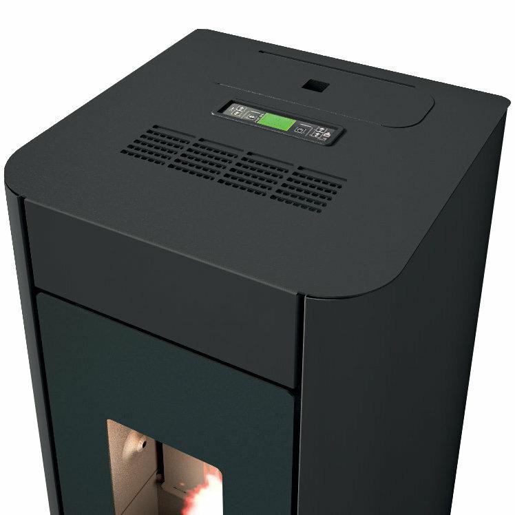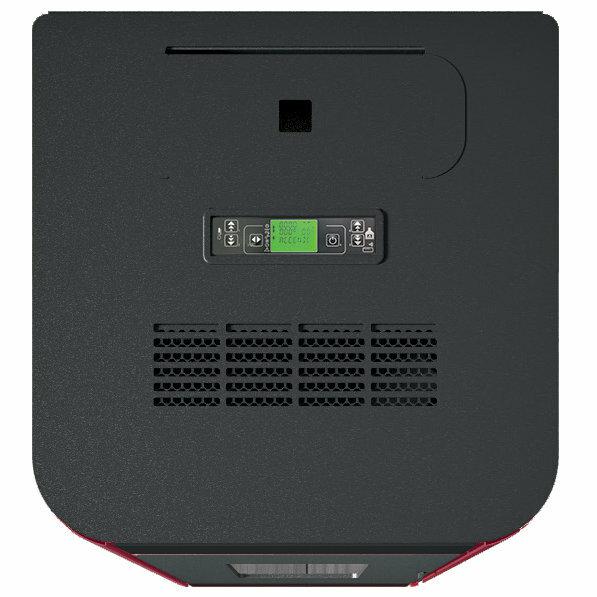 Vodna kaminska peč na pelete Frida 13 proizvaja toplo vodo za centralno ogrevanje in ogreva prostor z ventilacijo. Jekleno ohišje z zgornjim odvodom toplega zraka. Ročaj vrat je odstranljiv.