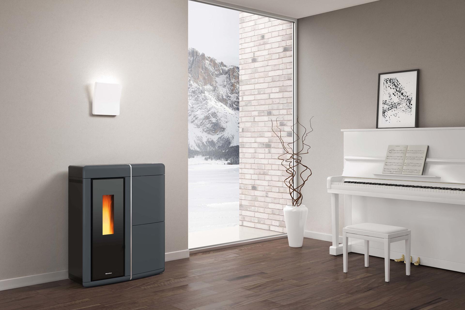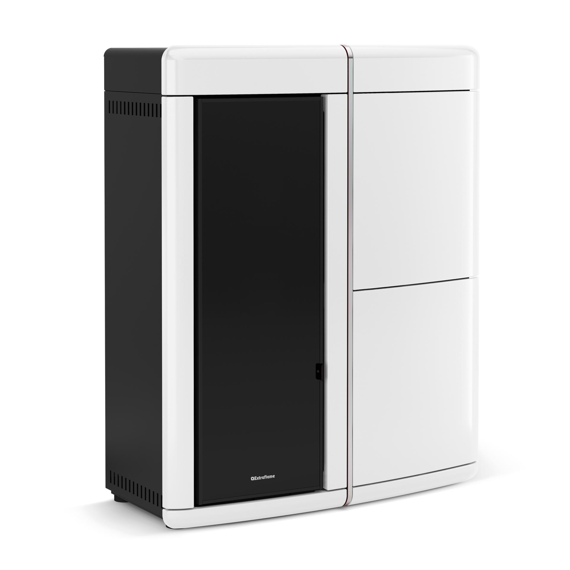 Kompaktna, zmogljiva in elegantno oblikovana termo peč na pelete Evelyne Idro 2.0 je popolna rešitev za tiste, ki zahtevajo najvišjo kakovost in izdelek, ki ga je mogoče popolnoma vključiti v bivalni prostor. Zaradi obloge iz majolike in standardnega stekla Black Screen postane peč Extraflame Evelyne Idro pravi dragulj v opremi notranjosti. Ima dvojna vrata, od katerih so zunanja opremljena z ravnim kaljenim steklom. Zaradi priključkov na dimnik zadaj, zgoraj in ob strani je enostavno najti pravo mesto za vgradnjo.